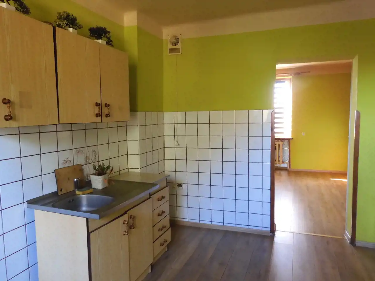 - Dom z lat 70-tych, budowany tradycyjnie z pustaka suporeks i cegły, kryty eternitem. Na przestrzeni lat wewnątrz przeszedł kilka modernizacji: wymieniono okna; instalacje wodno-kanalizacyjną, łazienkę około 2000r.; częściowo wymieniona instalacja elektryczna, jest w miedzi. Mieszkanie dwa pokoje, kuchnia, łazienka, przedpokój, dobudowany ganeczek- wymaga odswieżenia.