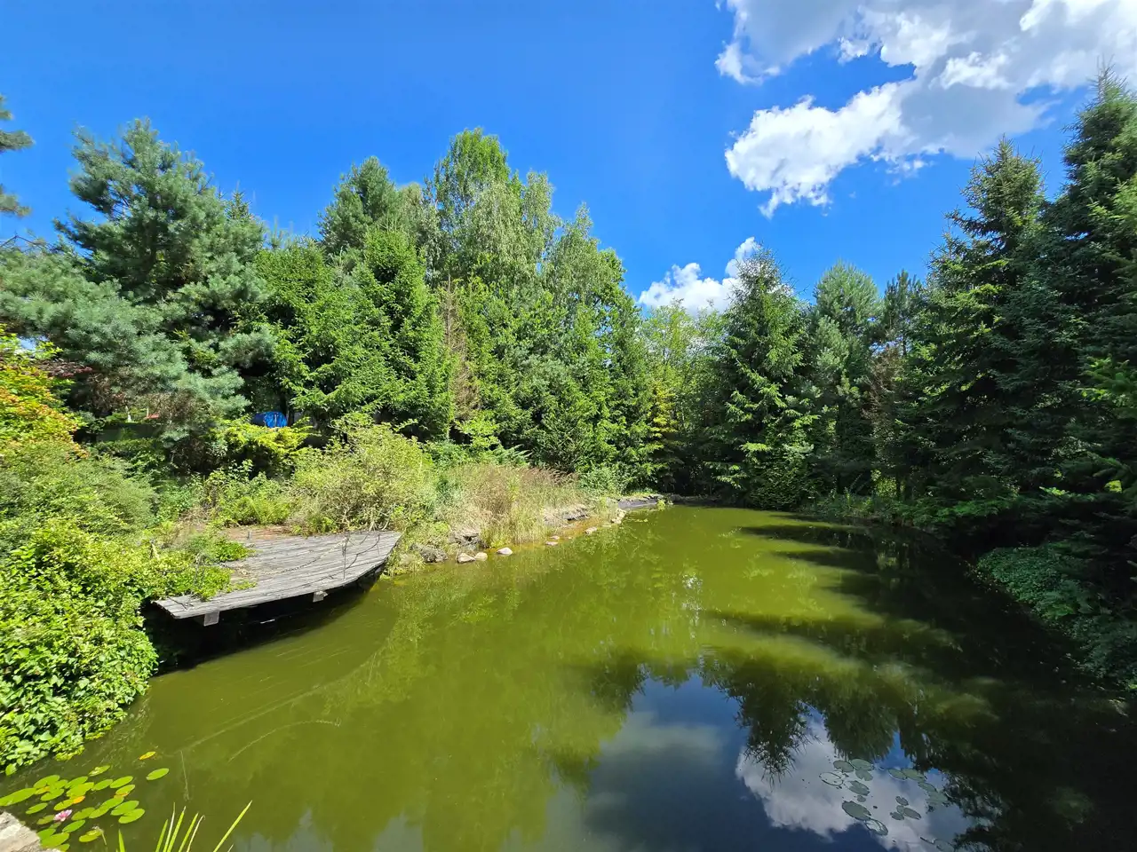 Urok nieruchomości podkreśla prywatny staw (ponad 150 m²) oraz starannie utrzymana zieleń. Z trzech stron pełna intymność, brak sąsiadów i piękny widok na otaczające tereny rolno-leśne. Przyjazne sąsiedztwo jest tylko od strony północnej.