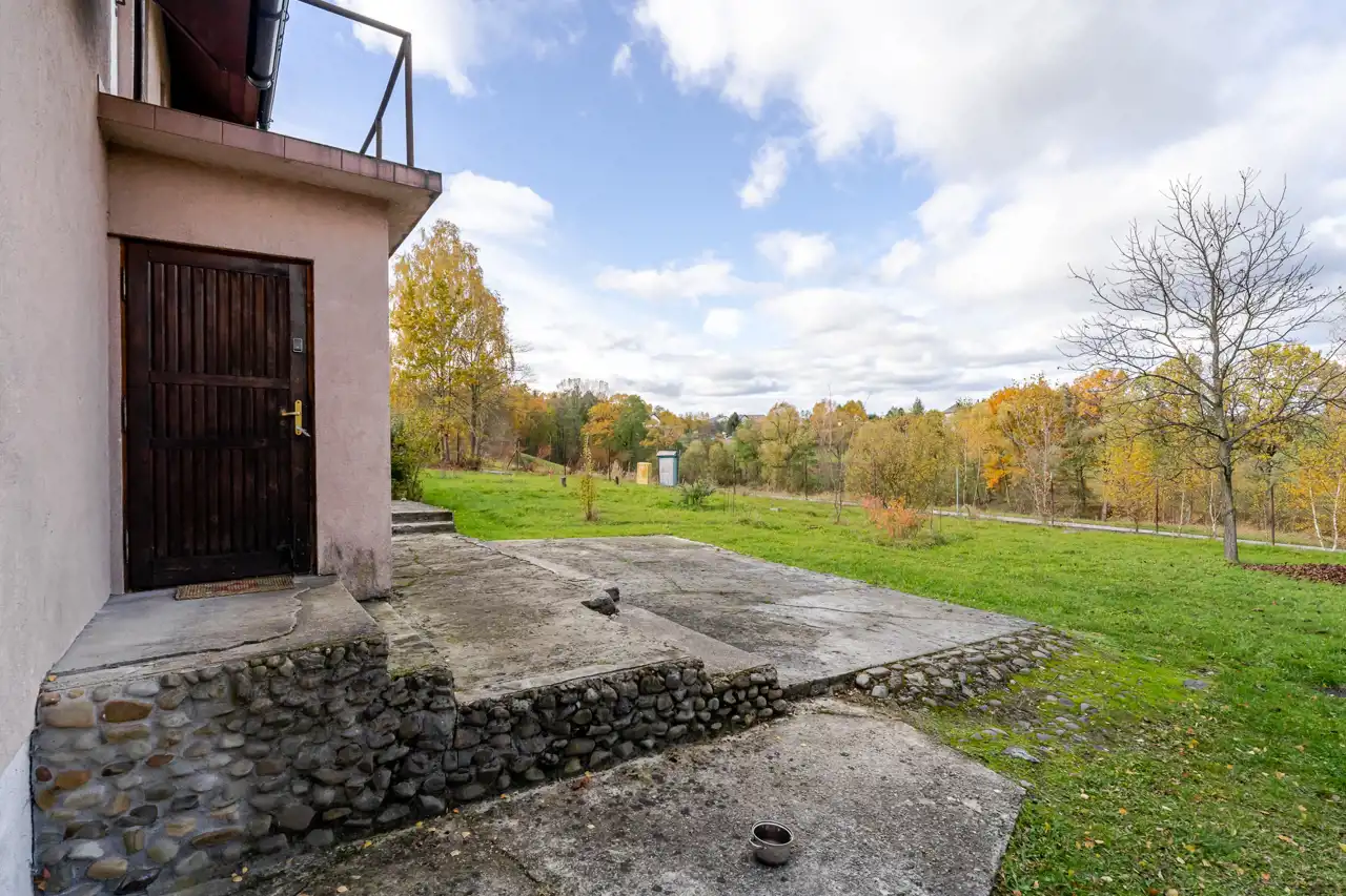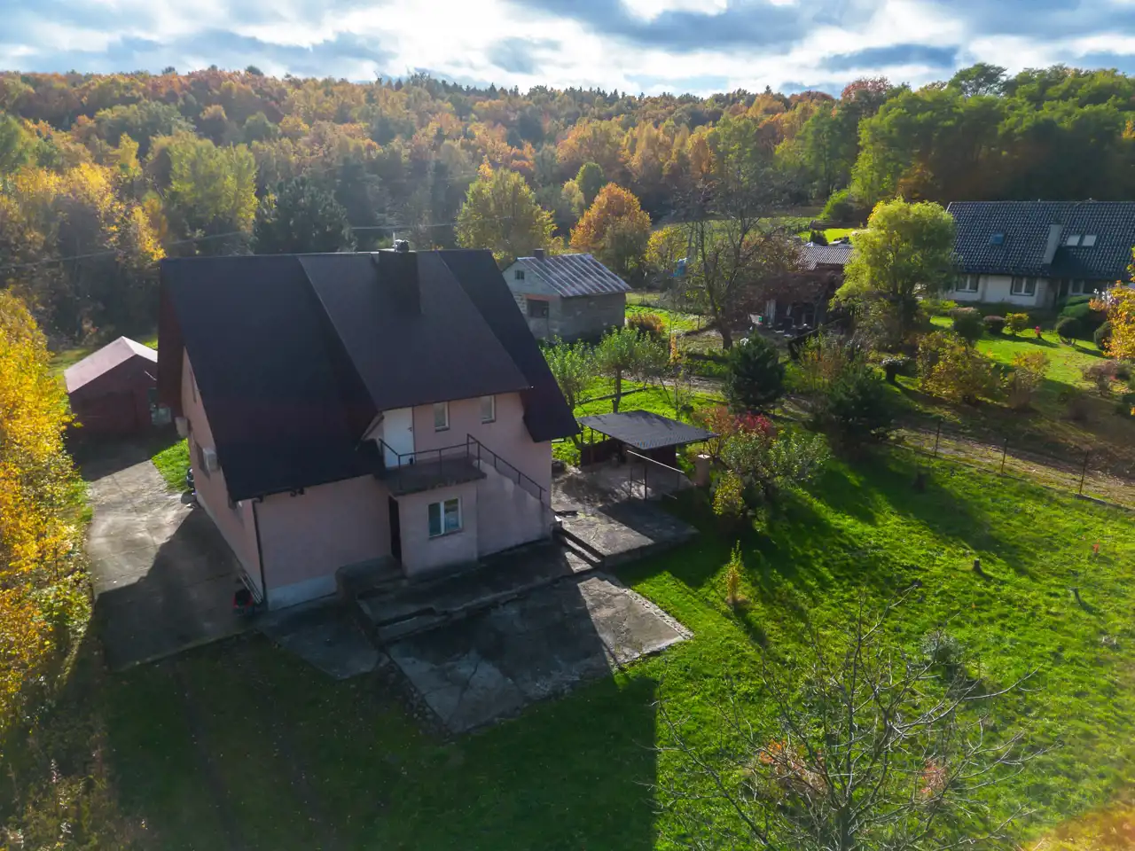 Dom położony jest na ogrodzonej działce o powierzchni prawie 21ar, z asfaltową drogą dojazdową