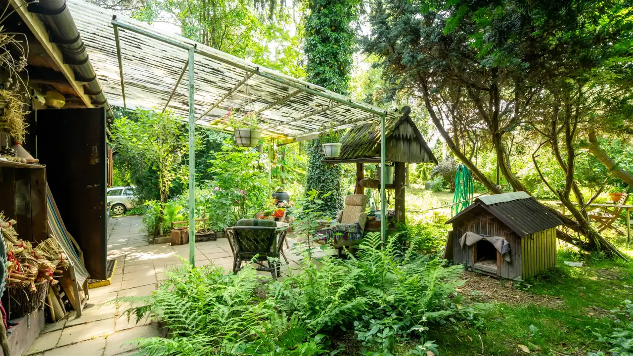 - Działka: 11 arów – ogrodzona, prostokątna, z pięknym ogrodem