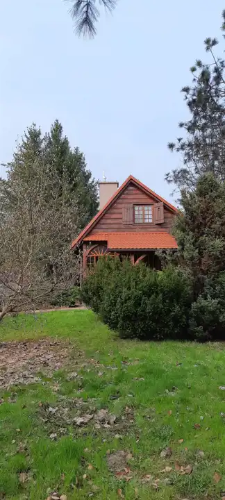 Aktualnie na działce usytuowany jest całoroczny podpiwniczony dom drewniany - "z bala " o powierzchni ok. 60 m2 . oraz kilka pomieszczeń gospodarczych, garażowych , magazynowych i rekreacyjnych.