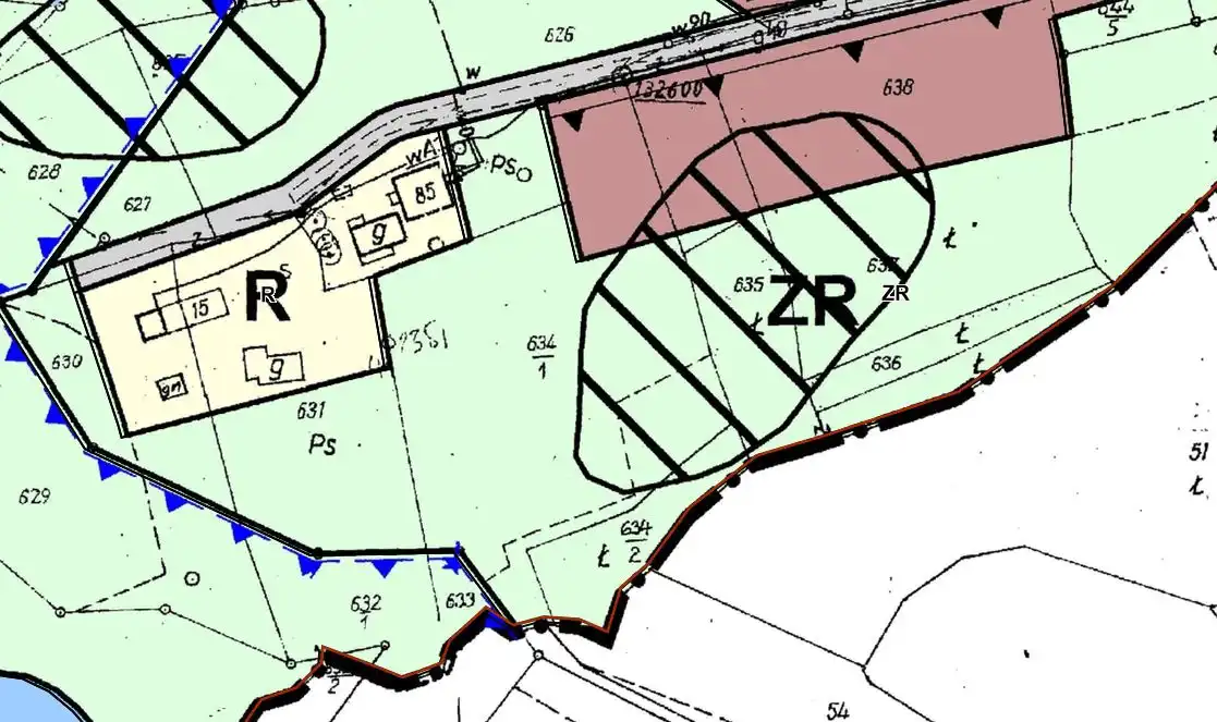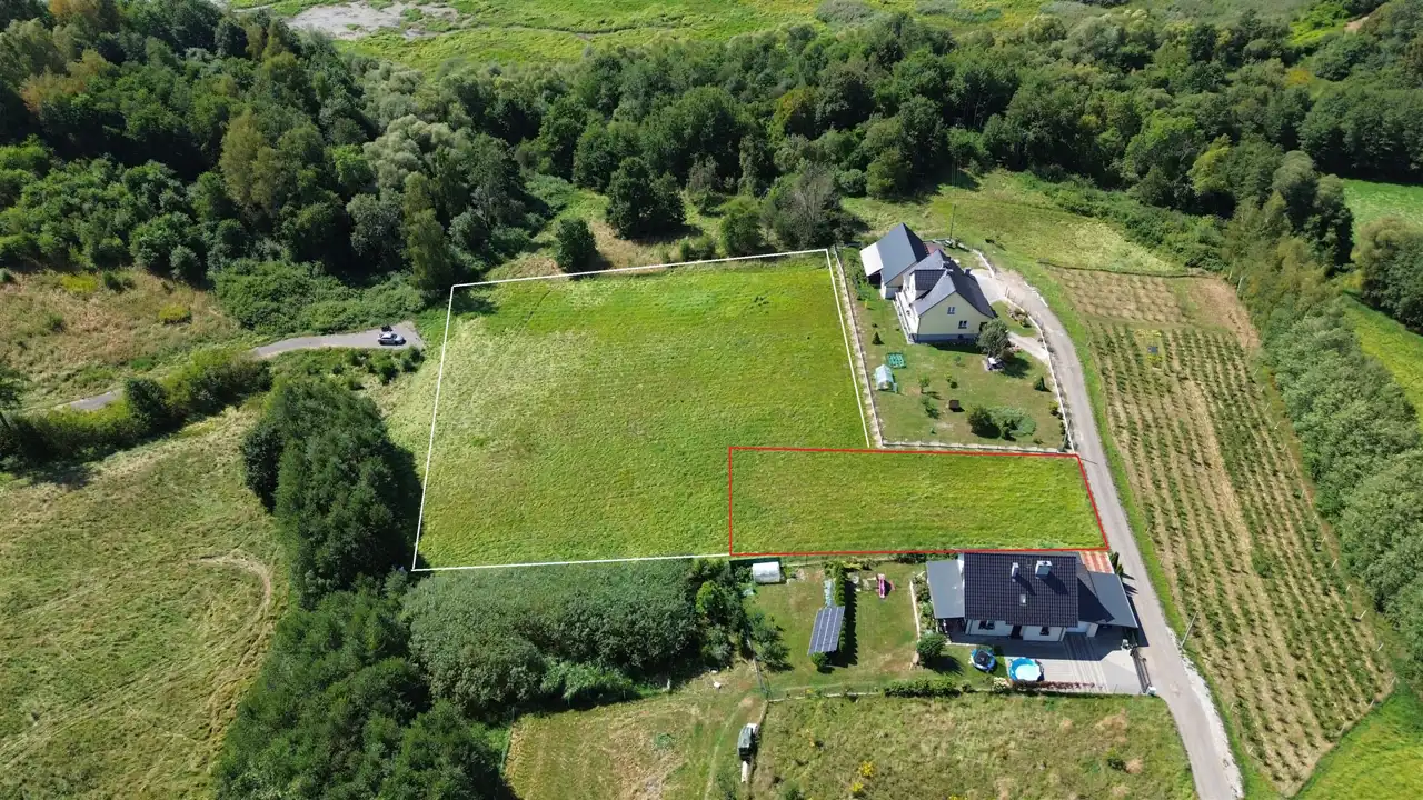 Oferta dotyczy działki 634/1 oznaczona na biało czerwono (czerwoną barwą oznaczona część budowlana). Działka jest objęta MPZP, budowlana z oznaczeniem MN2 - możliwość zabudowy jednorodzinnej lub bliźniaczej.