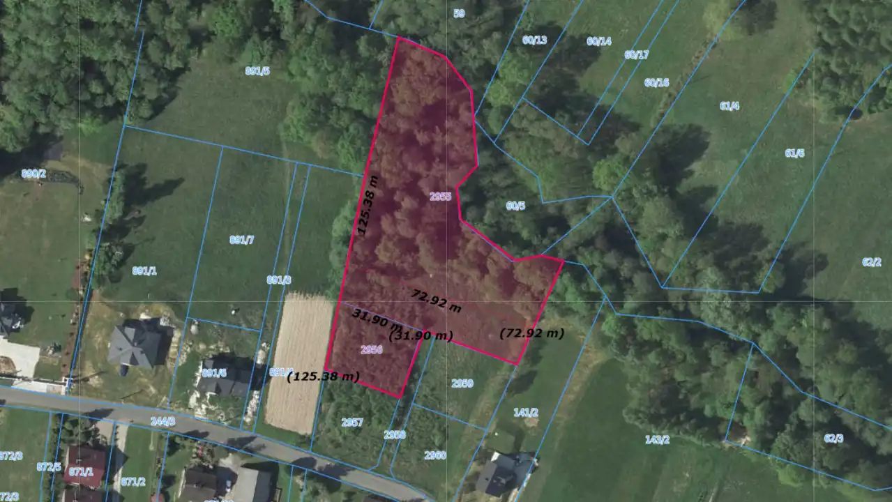 W skład działki wchodzą tereny rolnicze - ok. 15 arów, tereny lasów - ok. 35 arów, oraz działka budowlana - 803 m2.