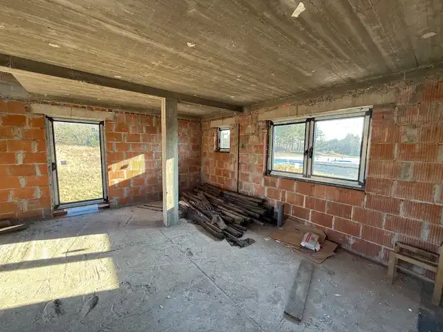 Nieruchomość w budowie położona na pięknej działce o powierzchni 5733 m2 wraz z własnym lasem.