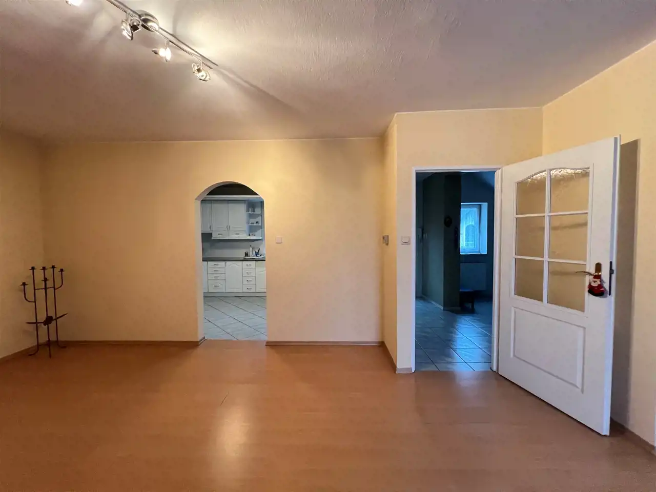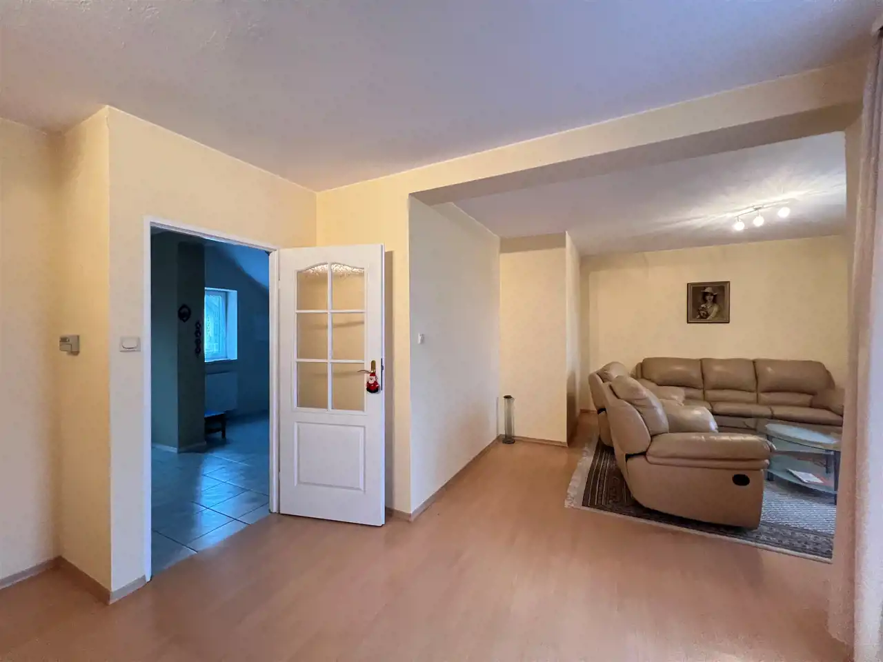 W garażu znajduje się wewnętrzne przejście do części mieszkalnej domu .