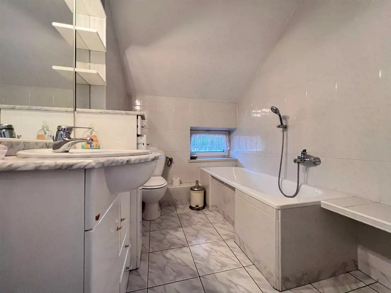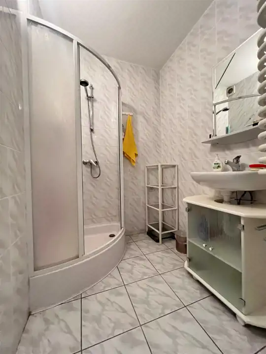 Na tym poziomie domu jest również duża łazienka z kabiną prysznicową oraz oddzielnym WC .