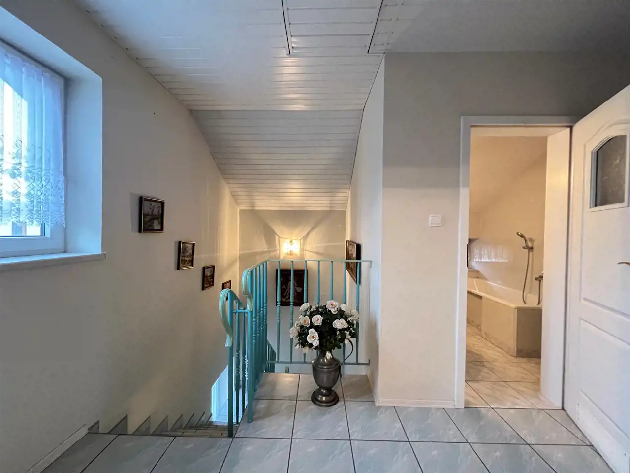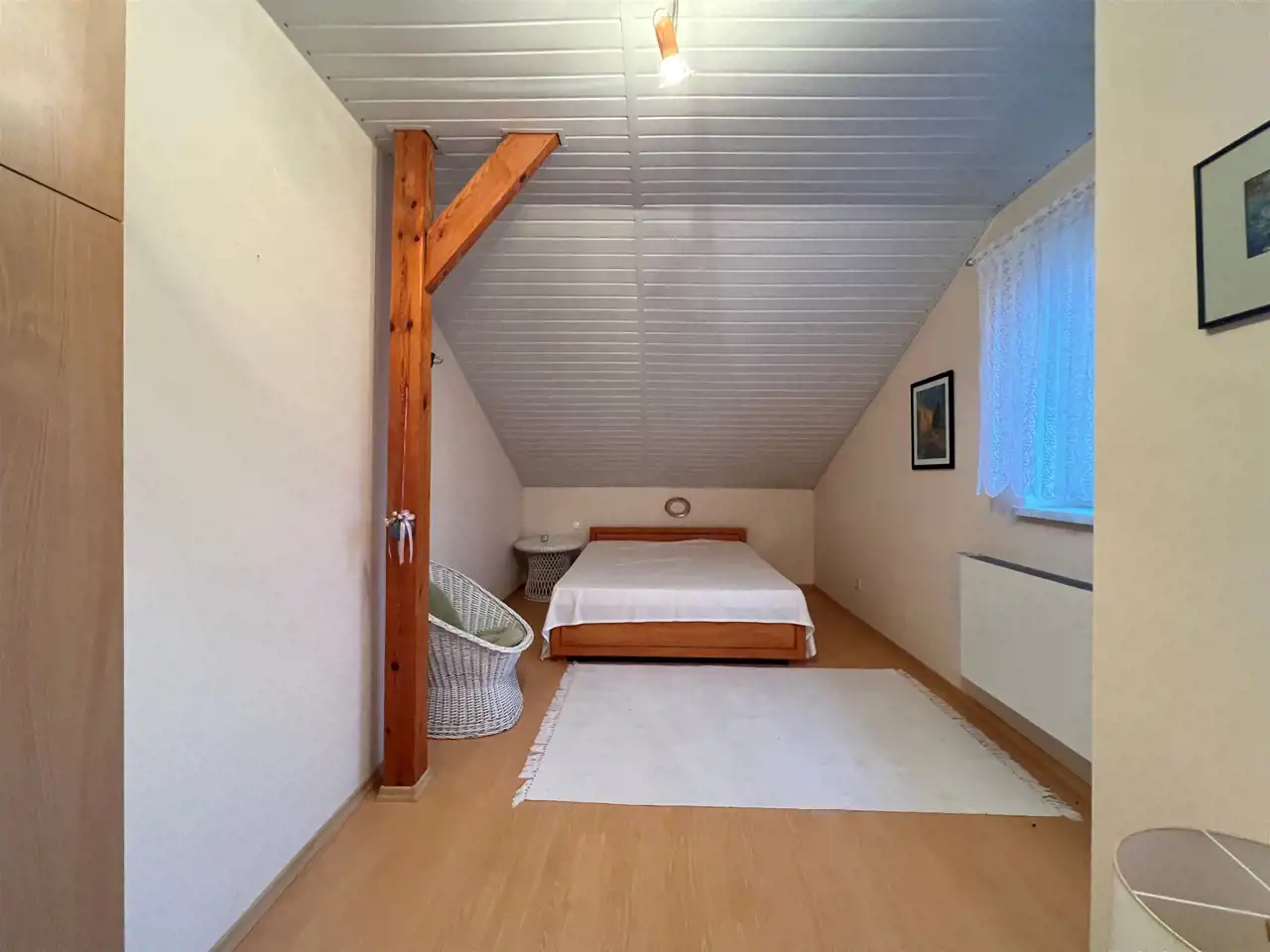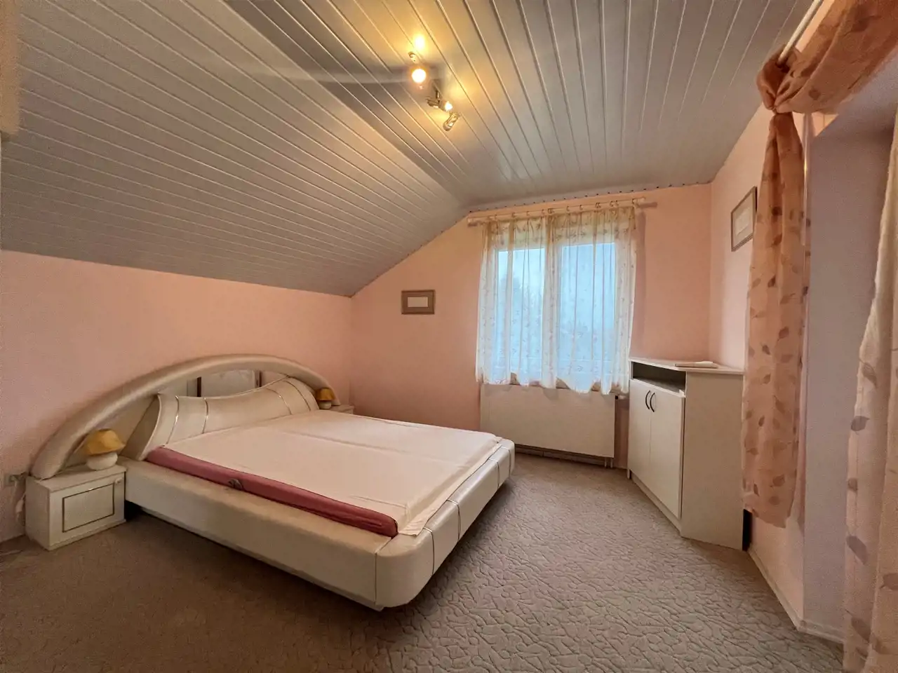 Na najwyższej kondygnacji znajduje się druga łazienka z wanną i WC oraz 3 sypialnie z pełnym wyposażeniem i umeblowaniem . Z dwóch sypialni jest wyjście na duży balkon.