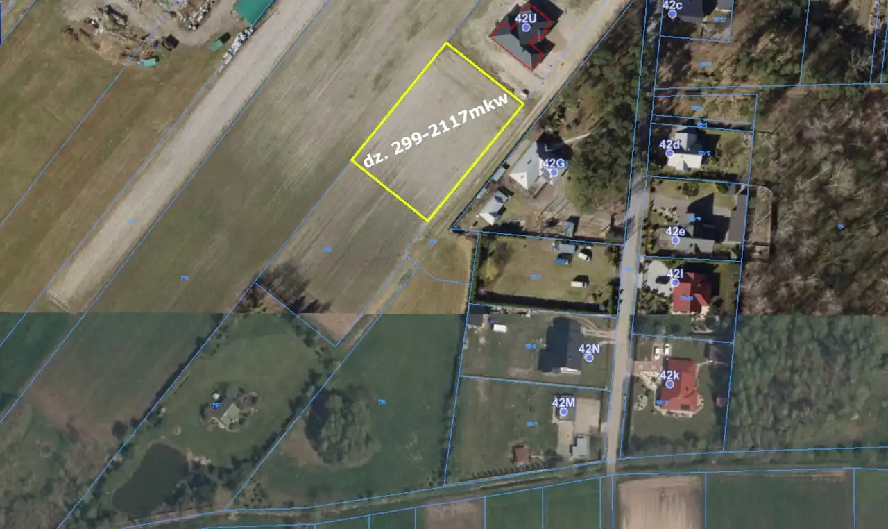 - działka nr: 299 o pow. 2117 m.kw.