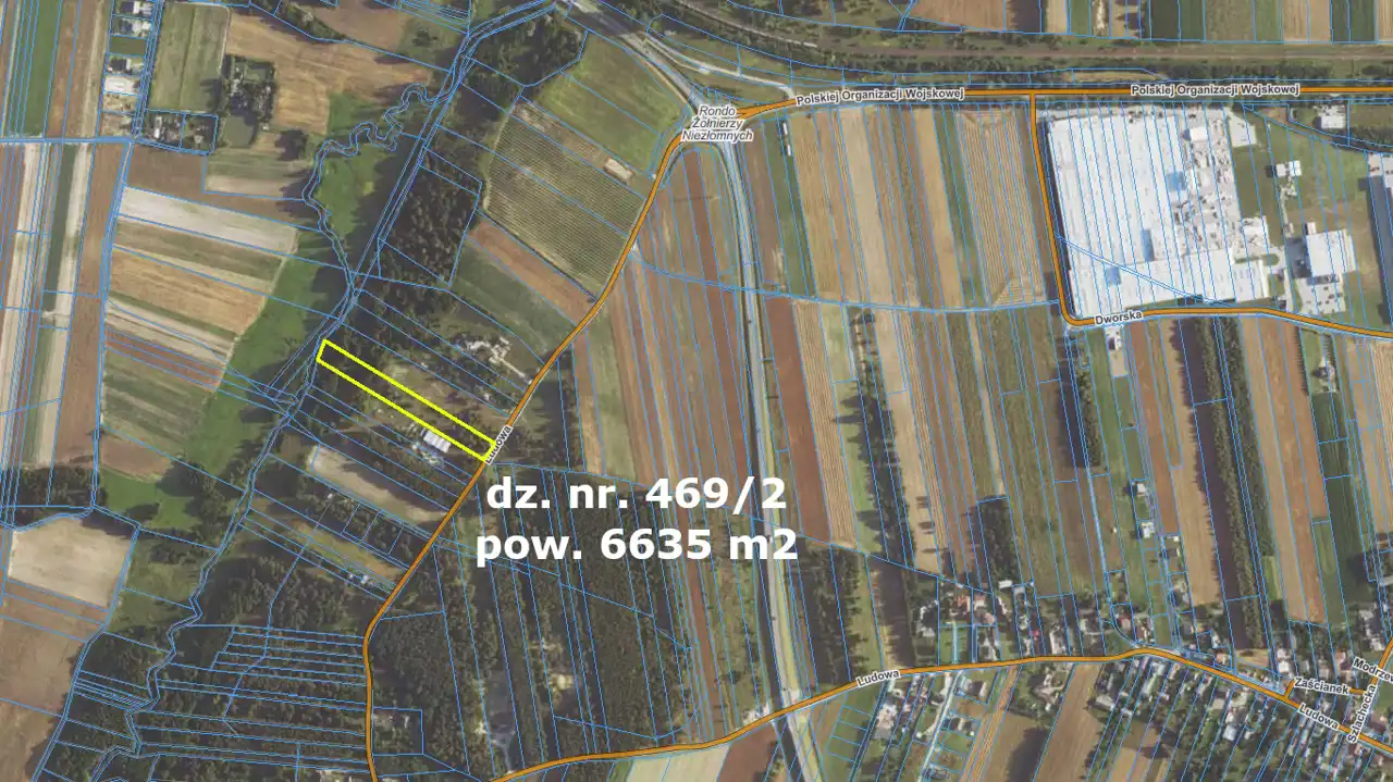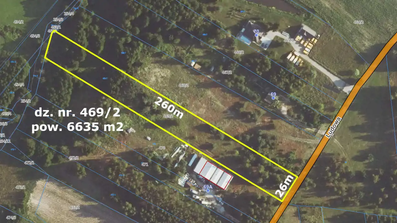 Działka w o wymiarach szerokość ok. 26 m. długość ok. 260 m.