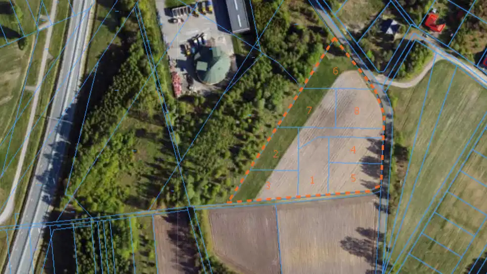 Kompleks składający się z 8 działek wraz z wytyczoną drogą wewnętrzną.