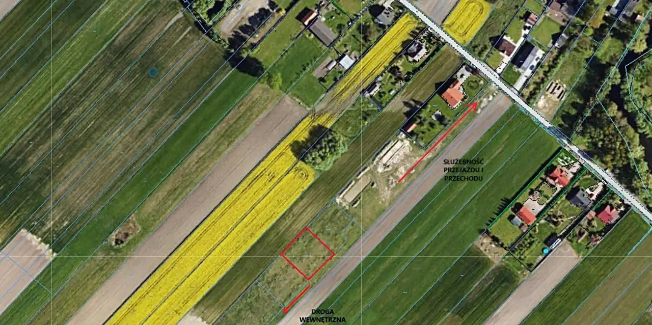 Działka będzie posiadała dostęp do drogi asfaltowej poprzez ustalenie służebności przejazdu i przechodu oraz posiadać będzie udział w drodze wewnętrznej.