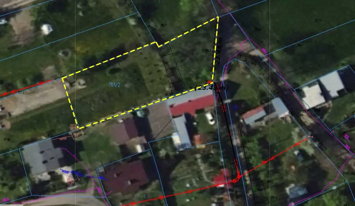 Działka o powierzchni 0,1035 ha, o szerokości frontowej 23 m.
