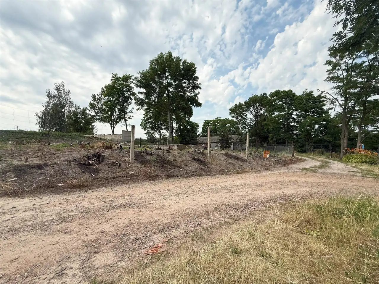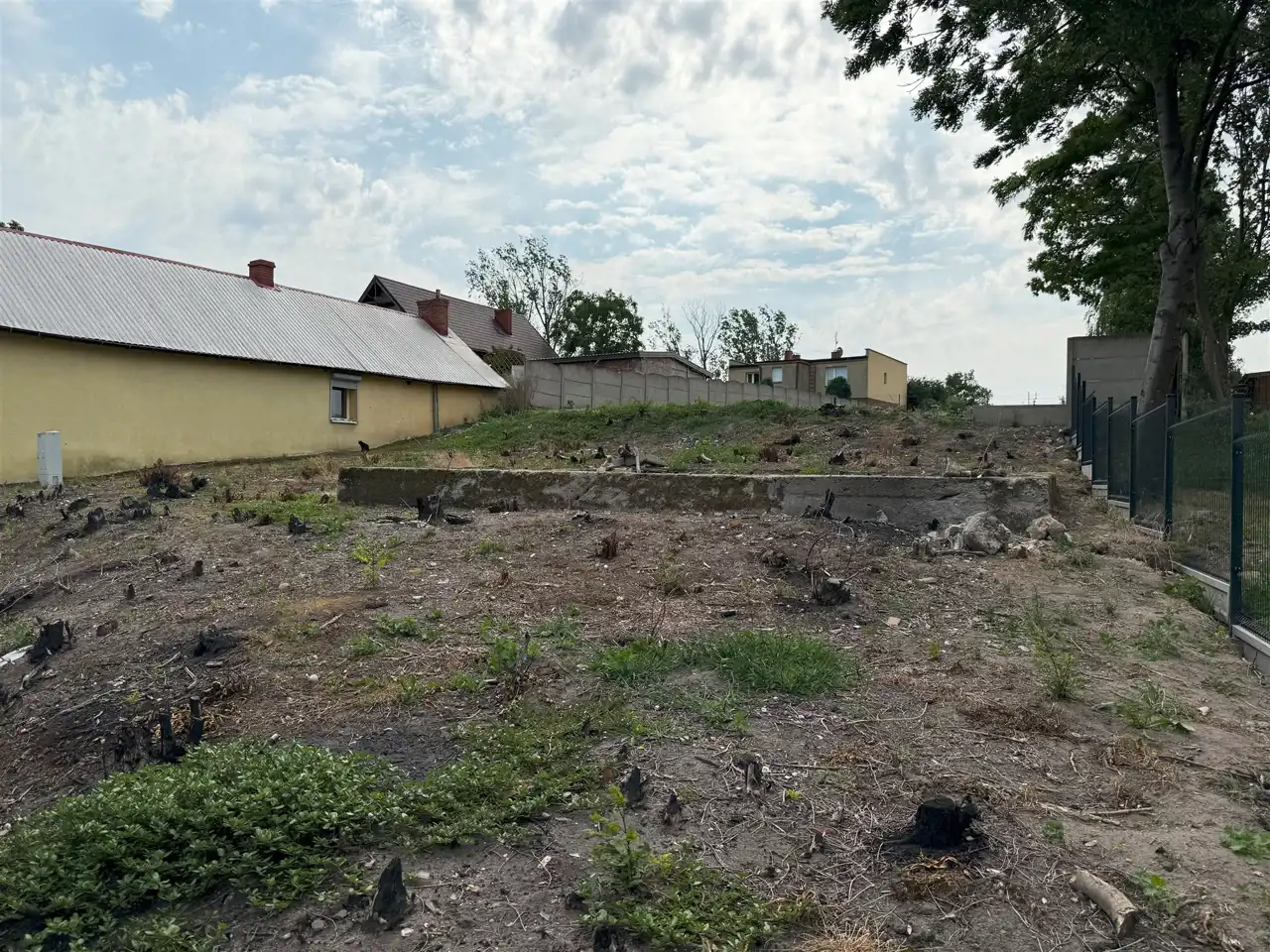 Działka ogrodzona płotem betonowym oraz siatką w panelach.