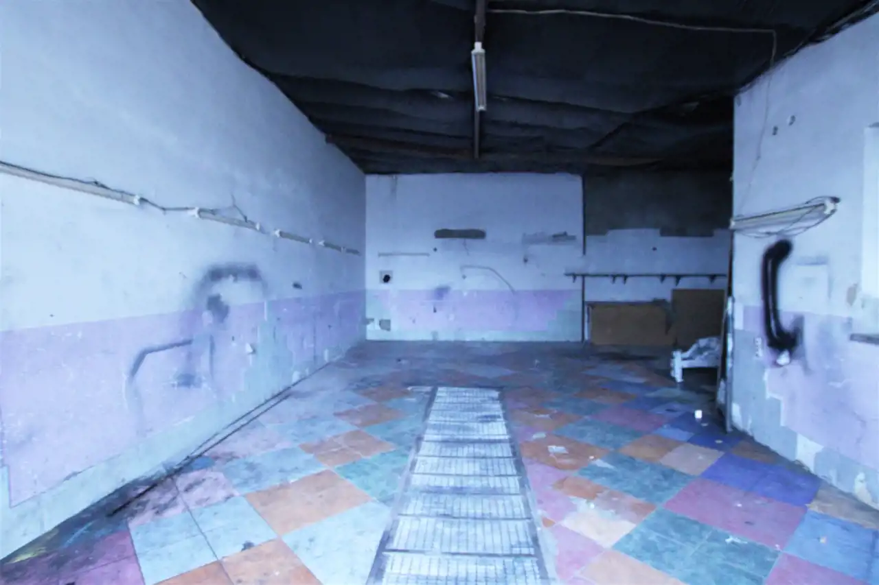 o powierzchni 180 mkw z drzwiami metalowymi, budynek wolnostojący w kształcie litery L, w głównym jego pomieszczeniu prosto z bramy znajduje się kanał drzwi garażowe wysokie na 3, 20m,
