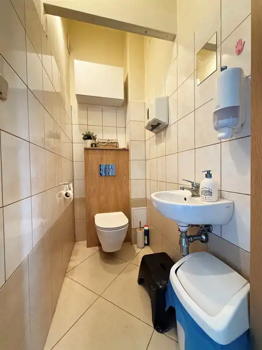 Lokal posiada dostęp do toalety oraz miejsce na poczekalnię.