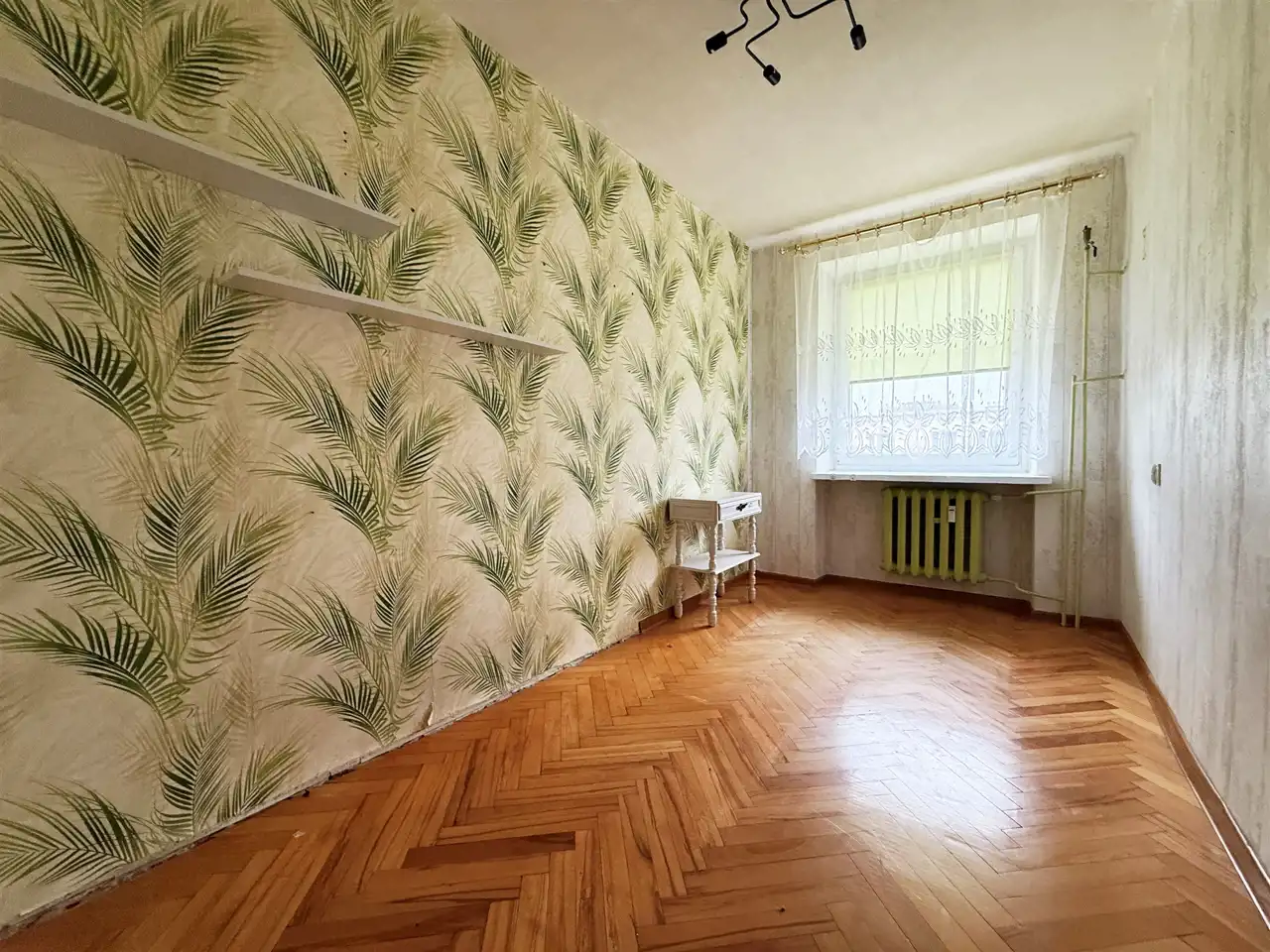 - pokoju sypialnianego, na podłogach parkiet, na ścianach tapeta.