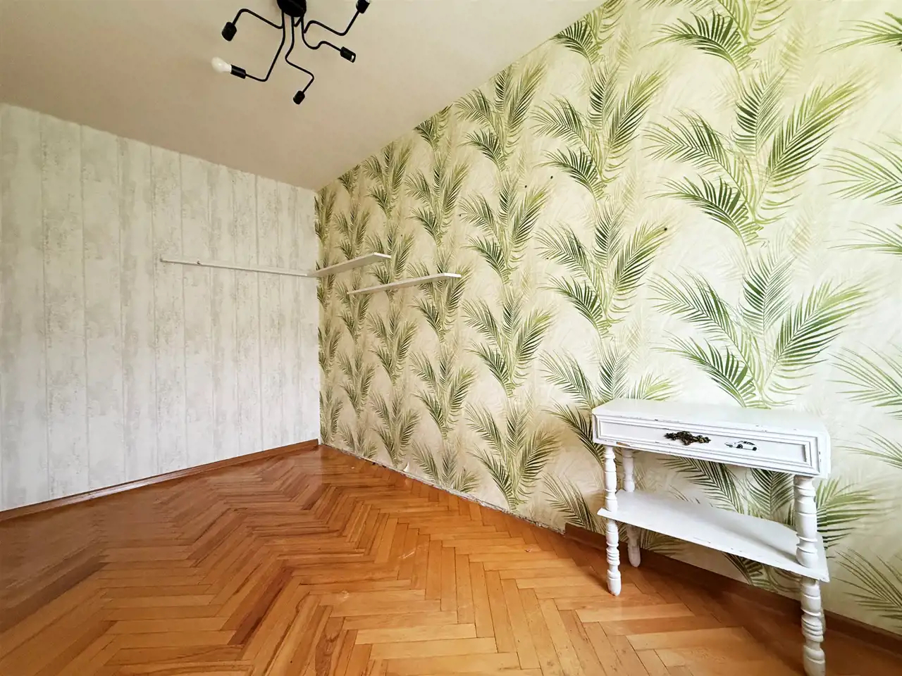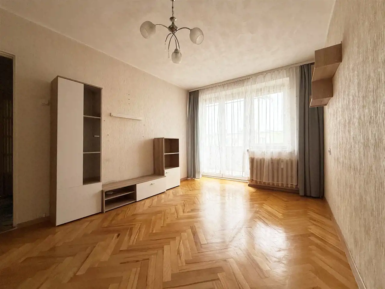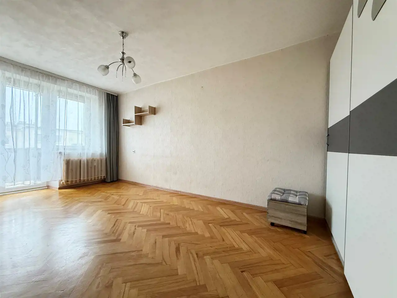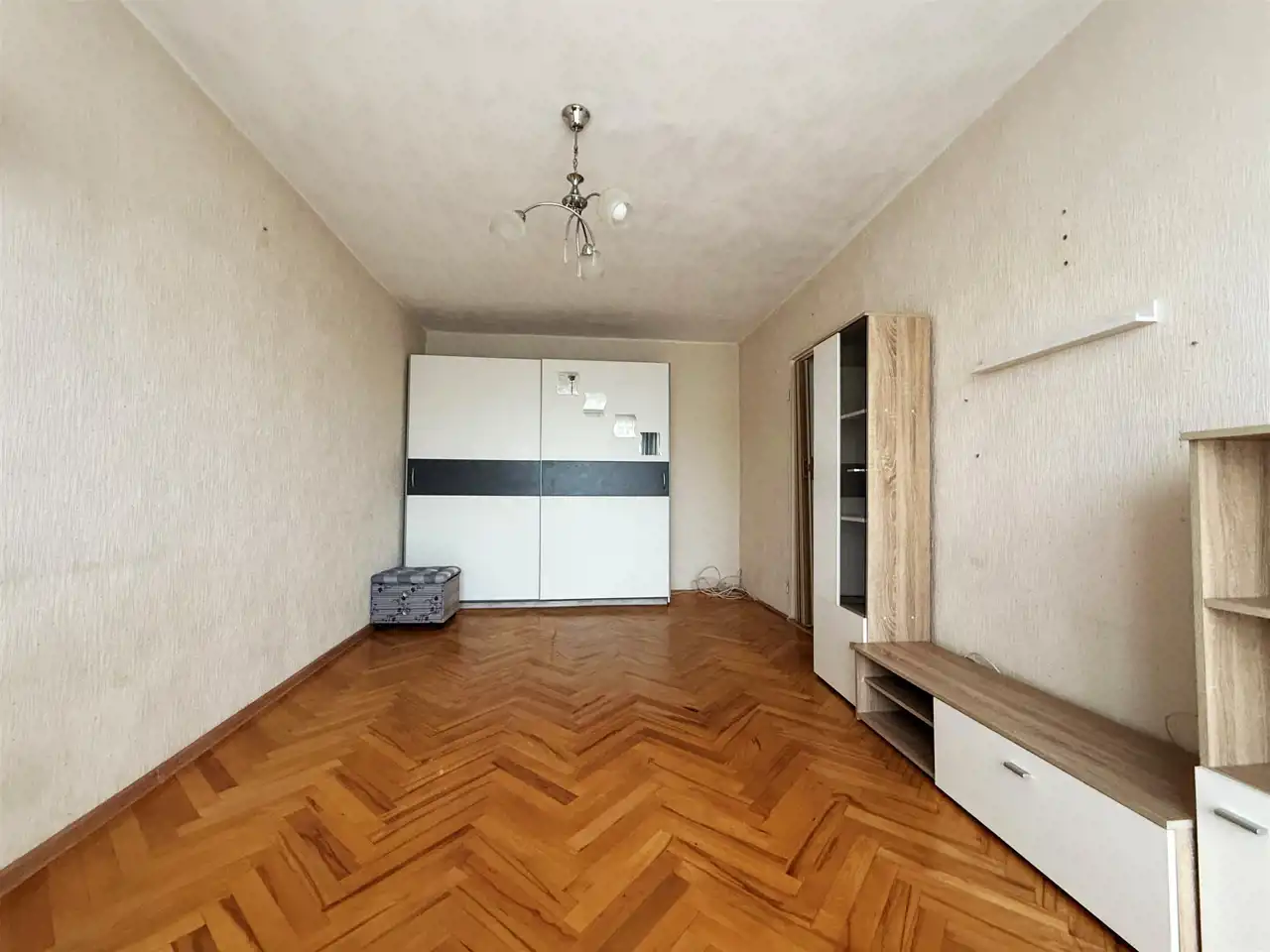 - salonu z wyjściem na balkon typu loggia. W salonie stoi kolejna szafa w zabudowie. Na podłogach parkiet w dobrym stanie, na ścianach tapeta;