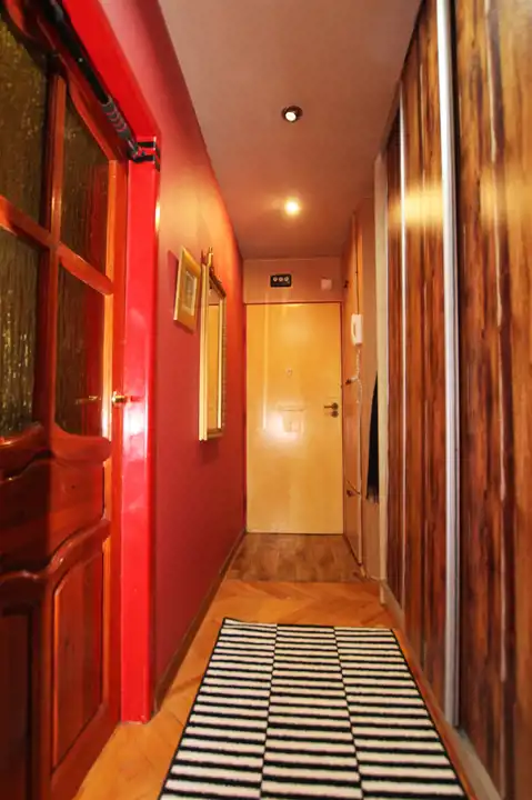 • Korytarz - wyposażony w szafę w zabudowie typu komandor, na podłogach parkiet, ściany malowane.