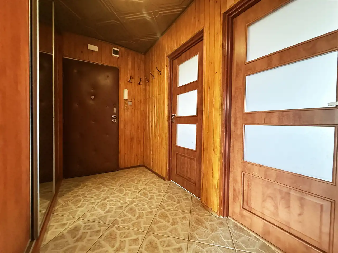 - przestronny korytarz; wyposażony w szafę w zabudowie typu komandor; na podłogach płytki, ściany w boazerii.