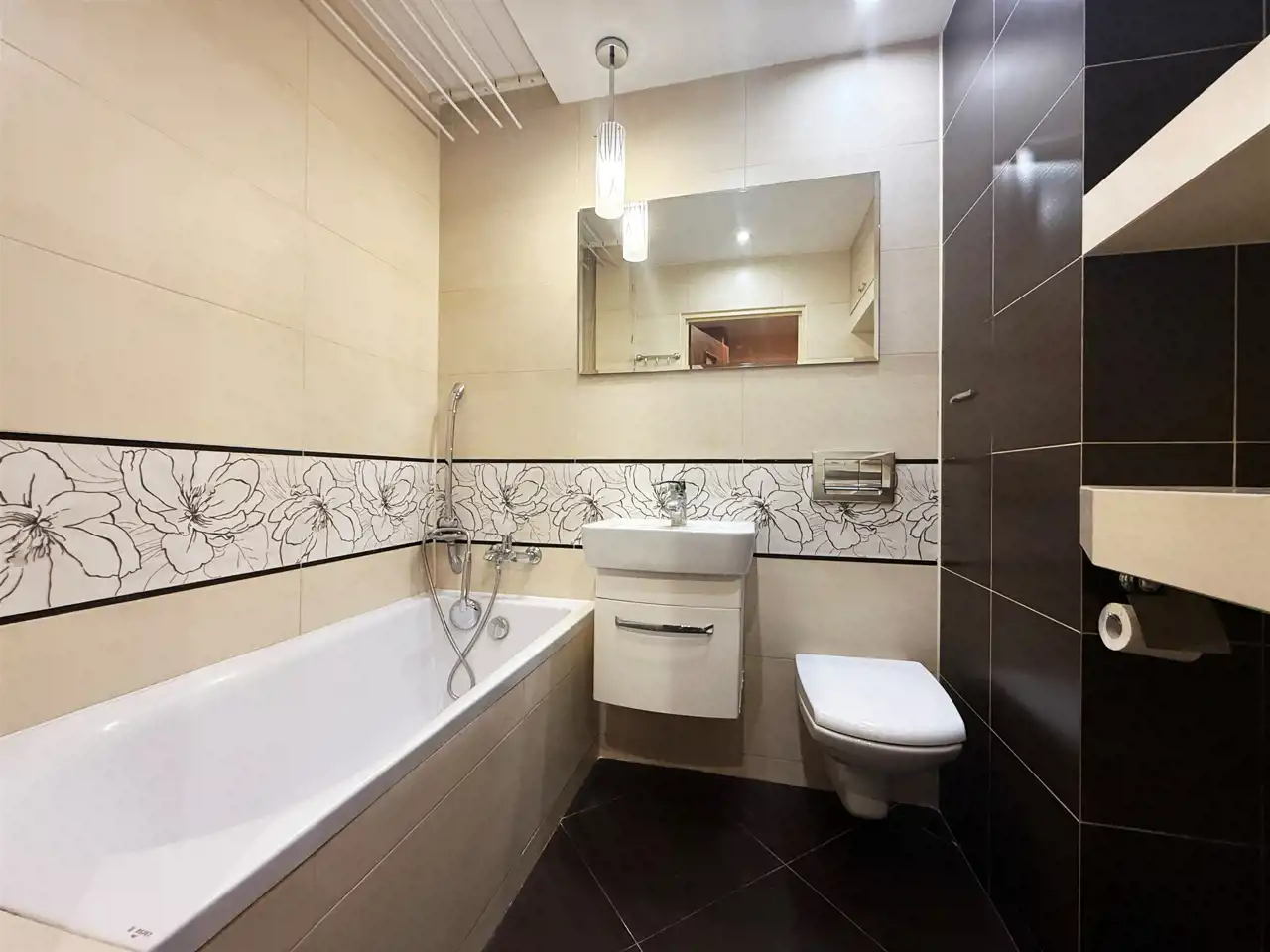 Na ścianach glazura, gładzie gipsowe oraz tapety.