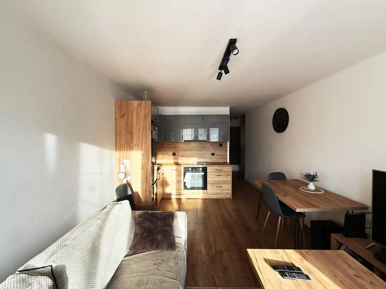 - salonu z aneksem kuchennym oraz wyjściem na balkon;