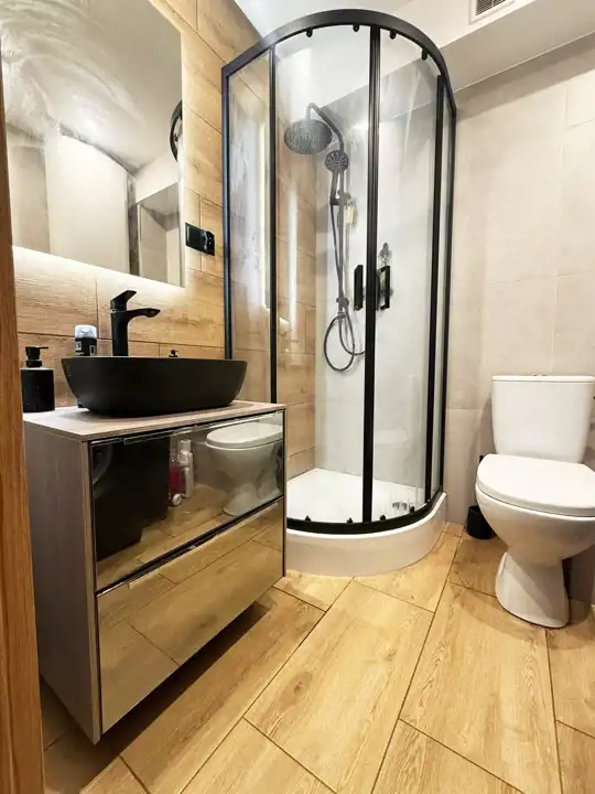 - łazienki z wc wyposażonej w kabinę prysznicową;