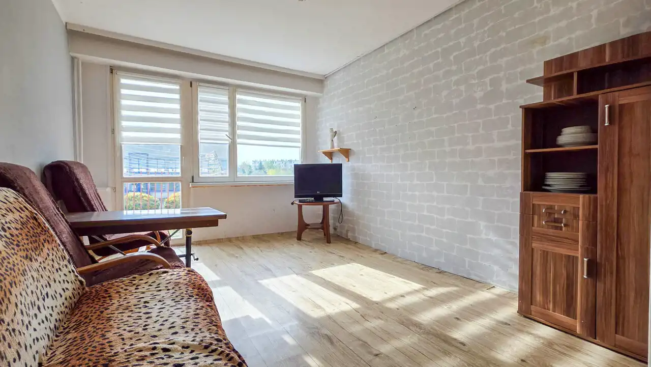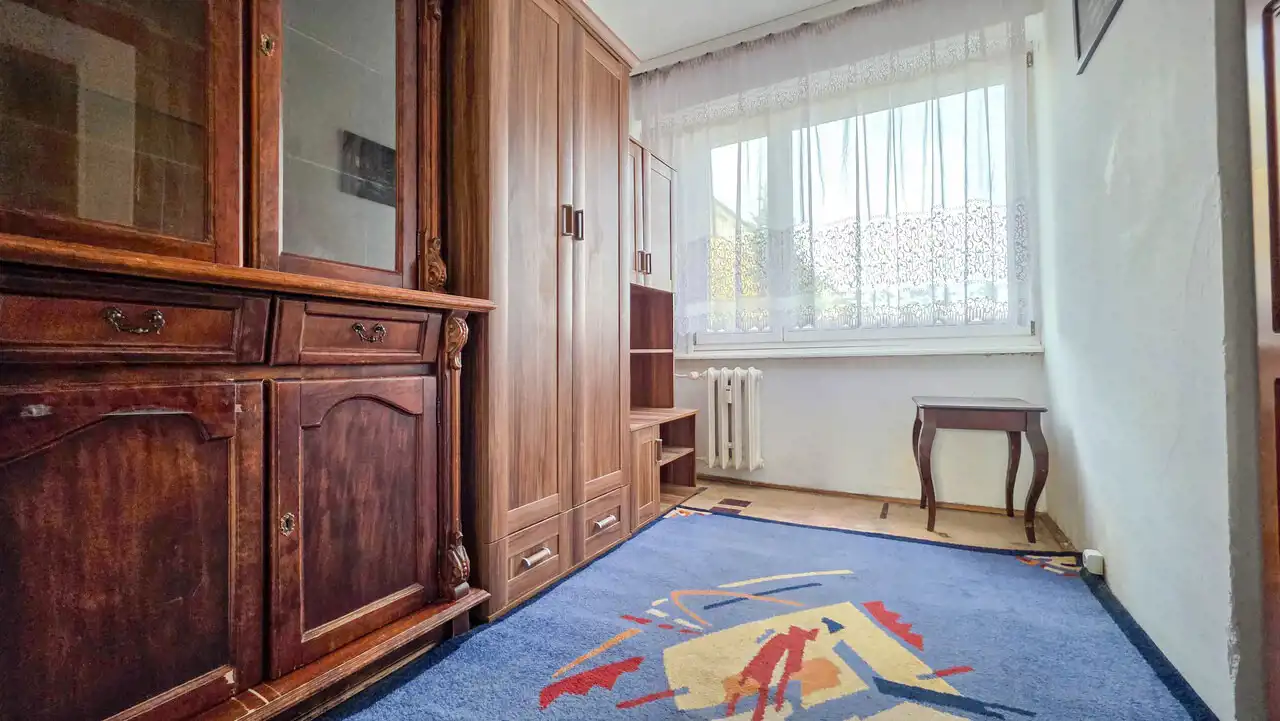 Lokal jest umeblowany i wyposażony w sprzęty AGD: kuchnia z piekarnikiem i płytą grzewczą, lodówka, pralka. W mieszkaniu znajdują się także szafy, komody, stolik, krzesła oraz kanapy. Instalacje zostały wymienione, a okna PCV zapewniają dobrą izolację. Wystarczy lekkie odświeżenie, by mieszkanie nabrało świeżego charakteru.