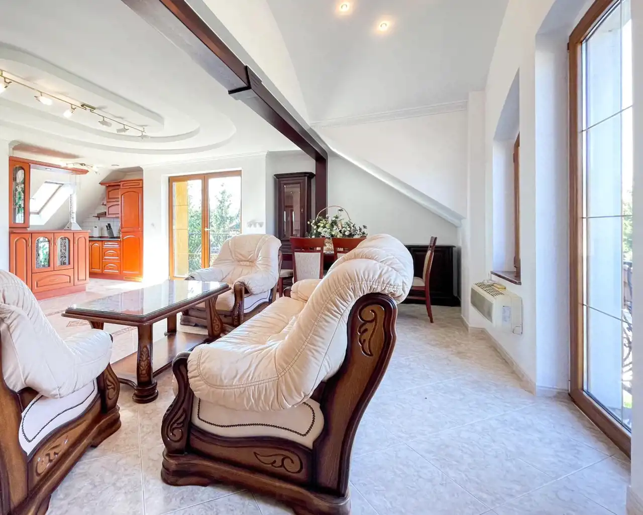 Nieruchomość o powierzchni 170 m² to idealna przestrzeń dla rodziny wielopokoleniowej, a dzięki dwóm osobnym kuchniom i łazienkom na parterze i piętrze,