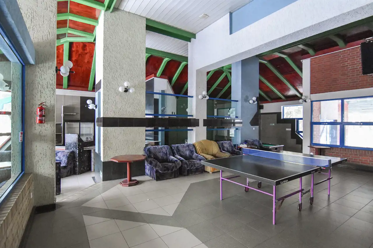 część klubowa ze świetlicą, recepcją, toaletami, pomieszczeniami