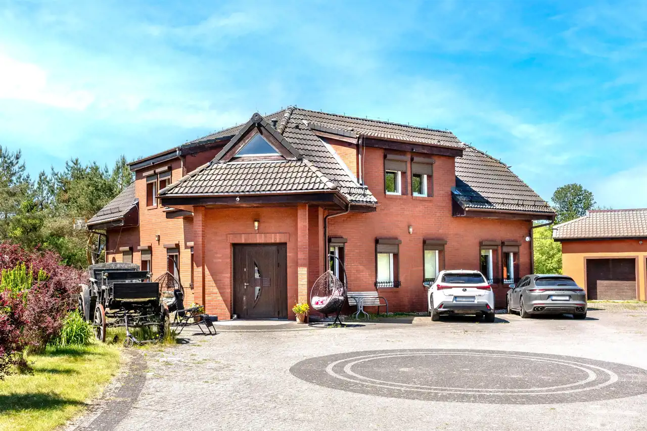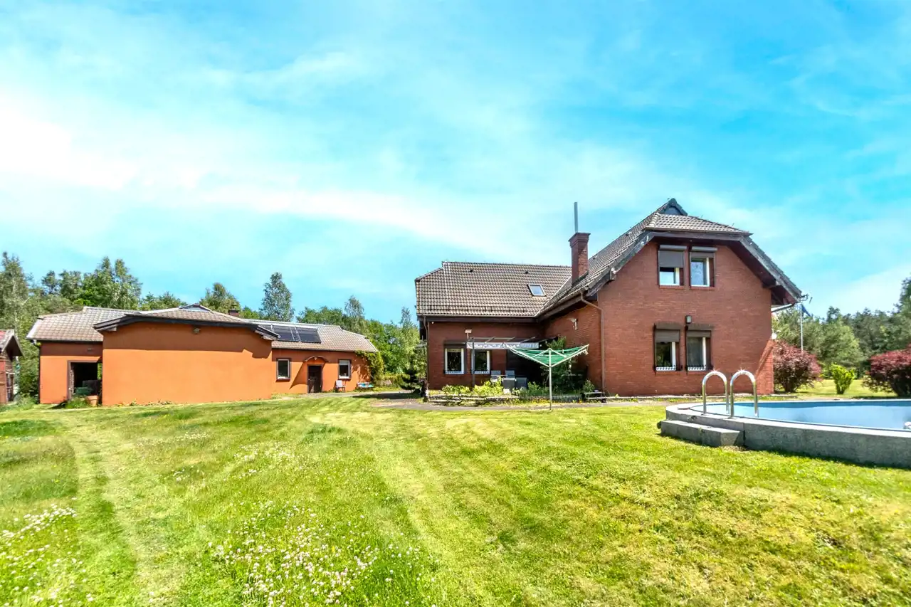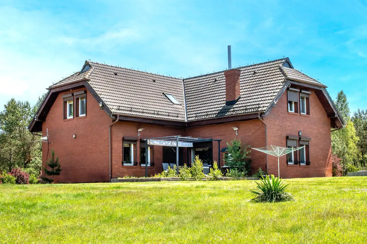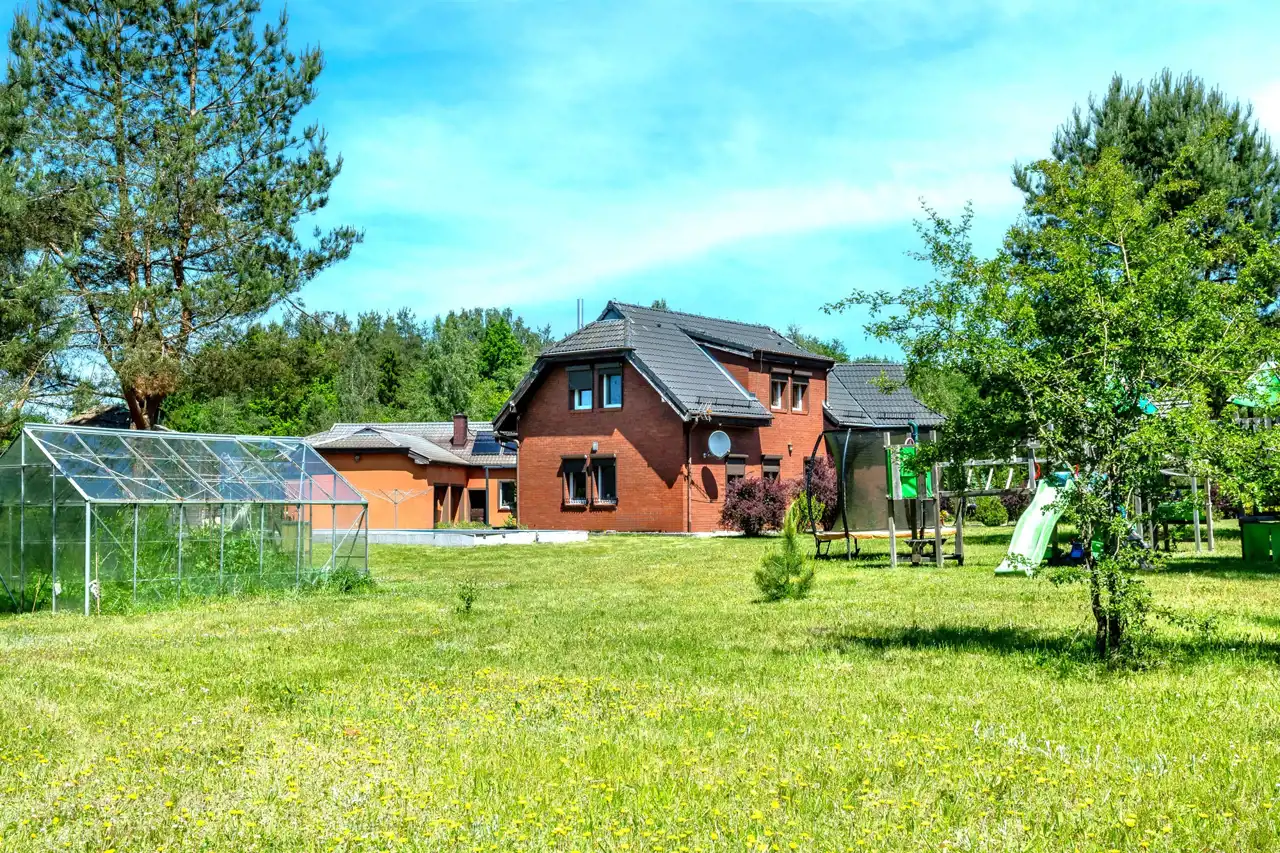 Rezydencja zachwyca rozległym, ponad dwuhektarowym, perfekcyjnie utrzymanym terenem, na którym – obok okazałego domu głównego – znajduje się również funkcjonalny budynek mieszkalno-gospodarczy. Całość tworzy harmonijną przestrzeń sprzyjającą zarówno codziennemu wypoczynkowi, jak i prowadzeniu działalności agroturystycznej. Teren, otoczony lasem i pełen naturalnych walorów, idealnie wpisuje się w charakter miejsca stworzonego pod agroturystykę – od wędkowania, przez kontakt ze zwierzętami, po możliwość organizacji wypoczynku w otoczeniu przyrody.