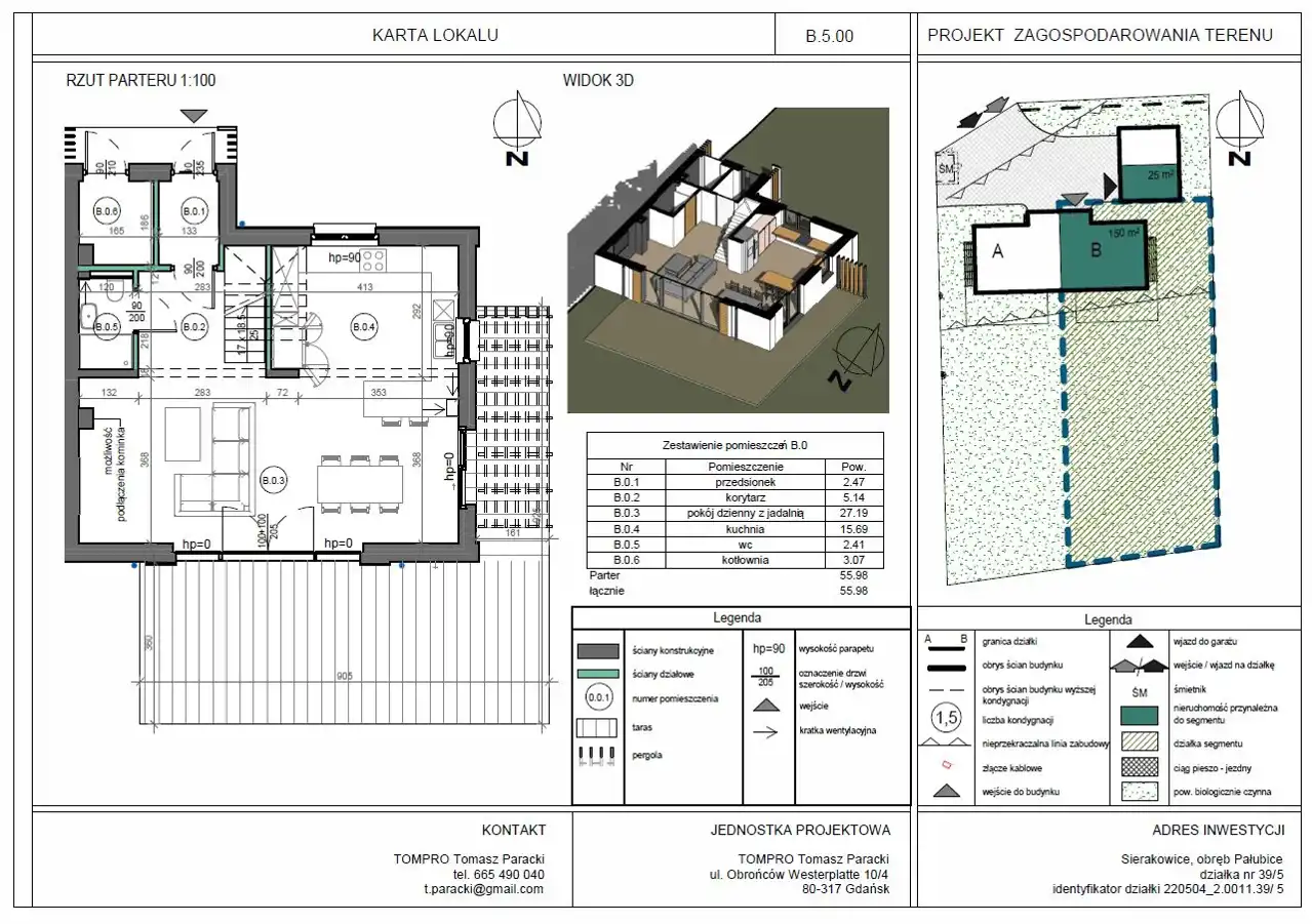 Parteru o powierzchni użytkowej 56m2 w skład, którego wchodzi: