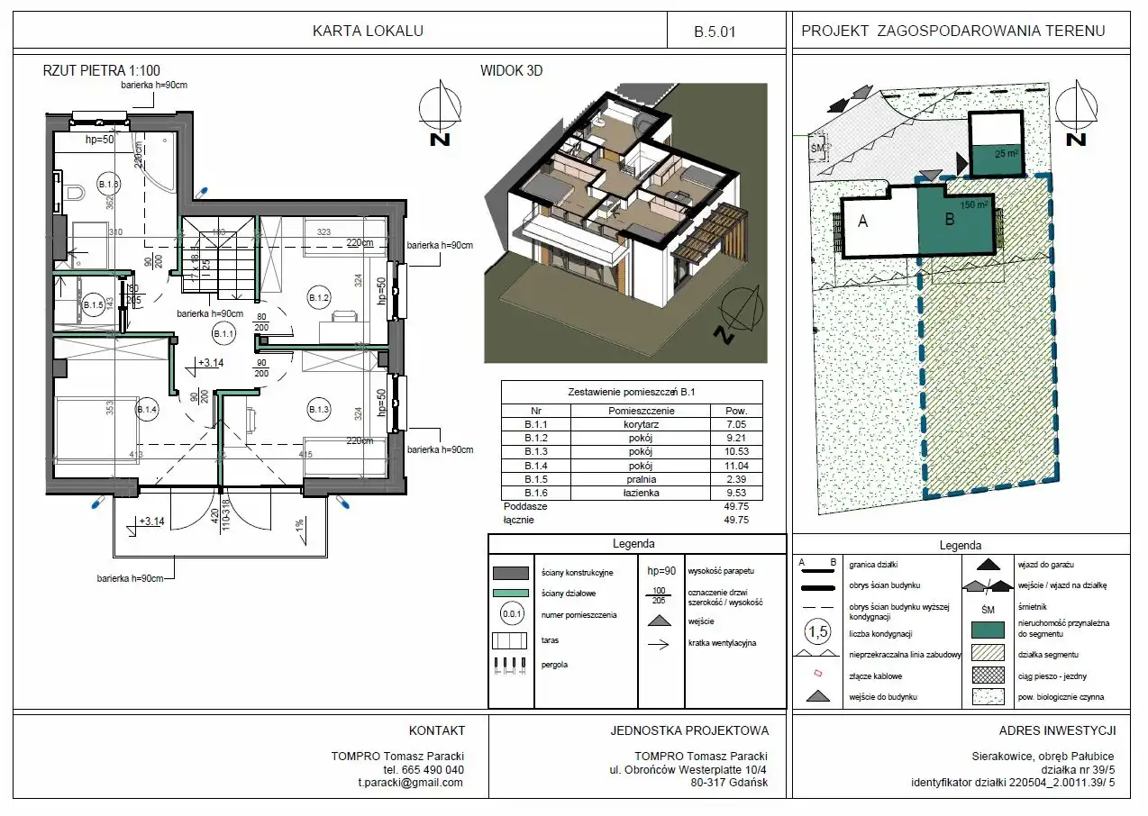Piętra o powierzchni użytkowej 49,75m2, na którym znajdują się: