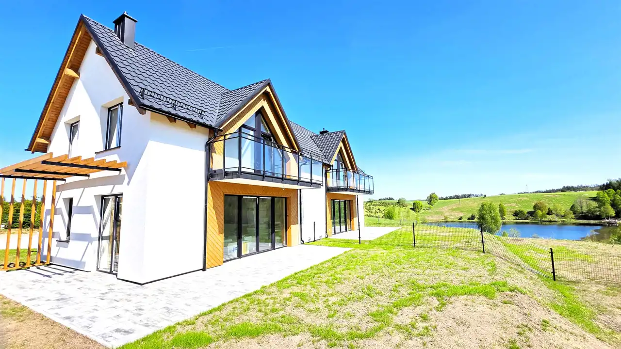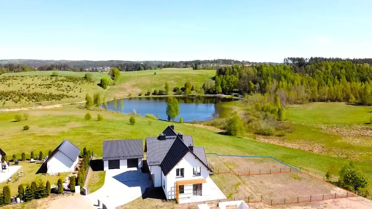 Oferujemy Państwu nowoczesny, komfortowy budynek mieszkalny dwulokalowy z wolnostojącym garażem zlokalizowany 5km od Sierakowic, na malowniczej działce z widokiem na jezioro i otaczający las. Niezabudowywalne tereny archeologiczne zapewniają, że ten widok pozostanie niezmienny. Nieruchomość wykonana jest najnowszą technologią z materiałów najwyższej jakości, które posiadają niezbędne atesty gwarantujące wysoką energooszczędność. Elewacja domu wykonana z tynków sylikatowo-silikonowych, które są odporne na zabrudzenia i korozję mikrobiologiczną (powstawanie glonów i grzybów), tworzących oddychającą powłokę, która przepuszcza parę wodną i dwutlenek węgla. Budynek zaprojektowany został w nietuzinkowy sposób dbając o jego maksymalną funkcjonalność, komfort i wygodę przyszłych mieszkańców, czyniąc go jednocześnie eleganckim z zewnątrz jak i wewnątrz.