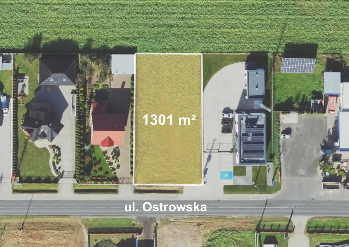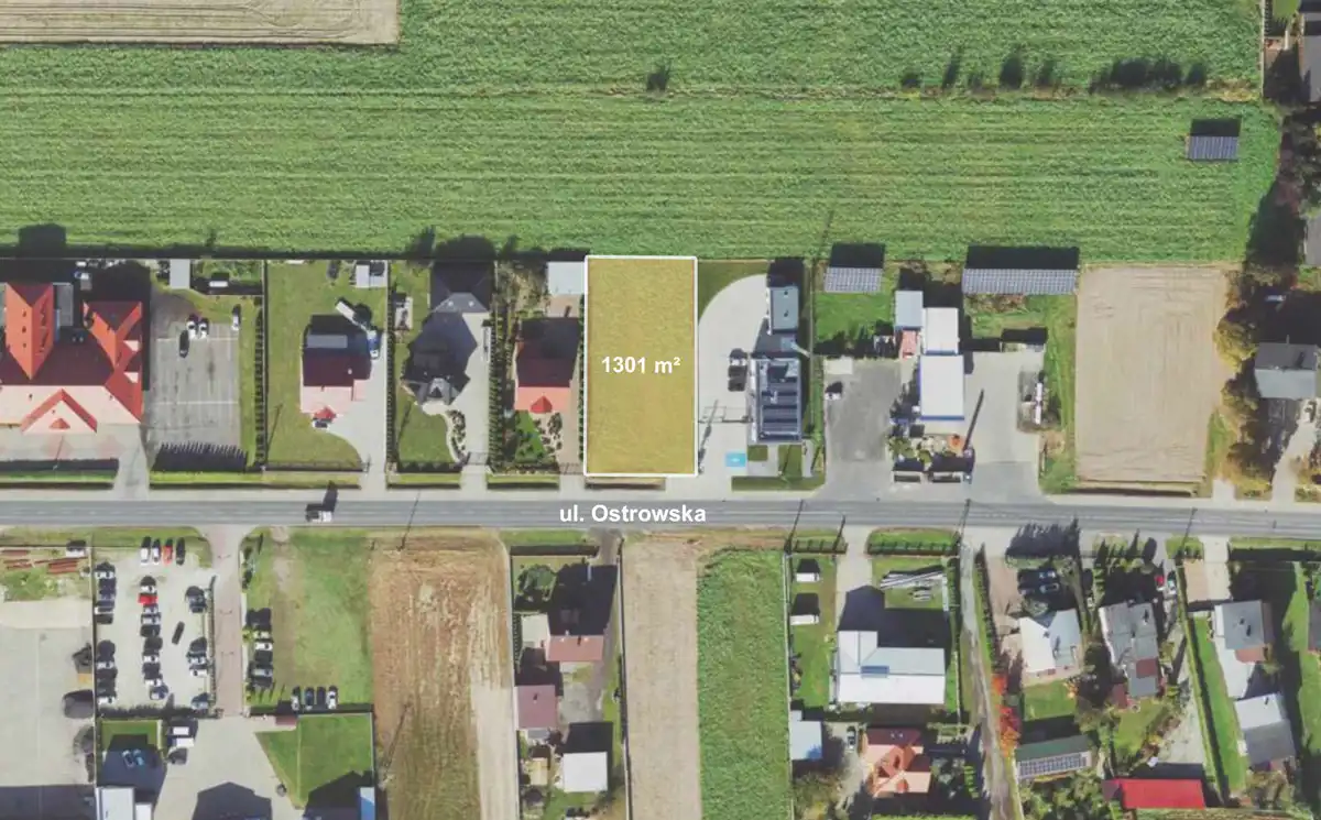 To propozycja dla osób planujących budowę domu, ale również dla inwestora szukającego gruntu pod działalność usługową lub handlową. Regularny kształt, wjazd od południa, bezpośrednie położenie przy głównej drodze prowadzącej do Ostrowa Wielkopolskiego oraz media w działce tworzą funkcjonalną bazę zarówno pod zabudowę mieszkaniową, jak i przedsięwzięcie o charakterze usługowym.