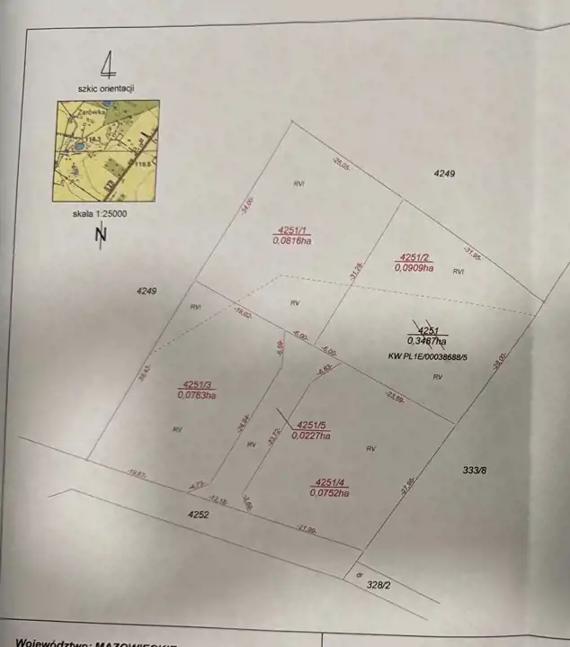 Wydane bezterminowe warunki zabudowy, prąd na działce, 0,0782ha oraz 0,0752ha.(4251/3, 4251/4)