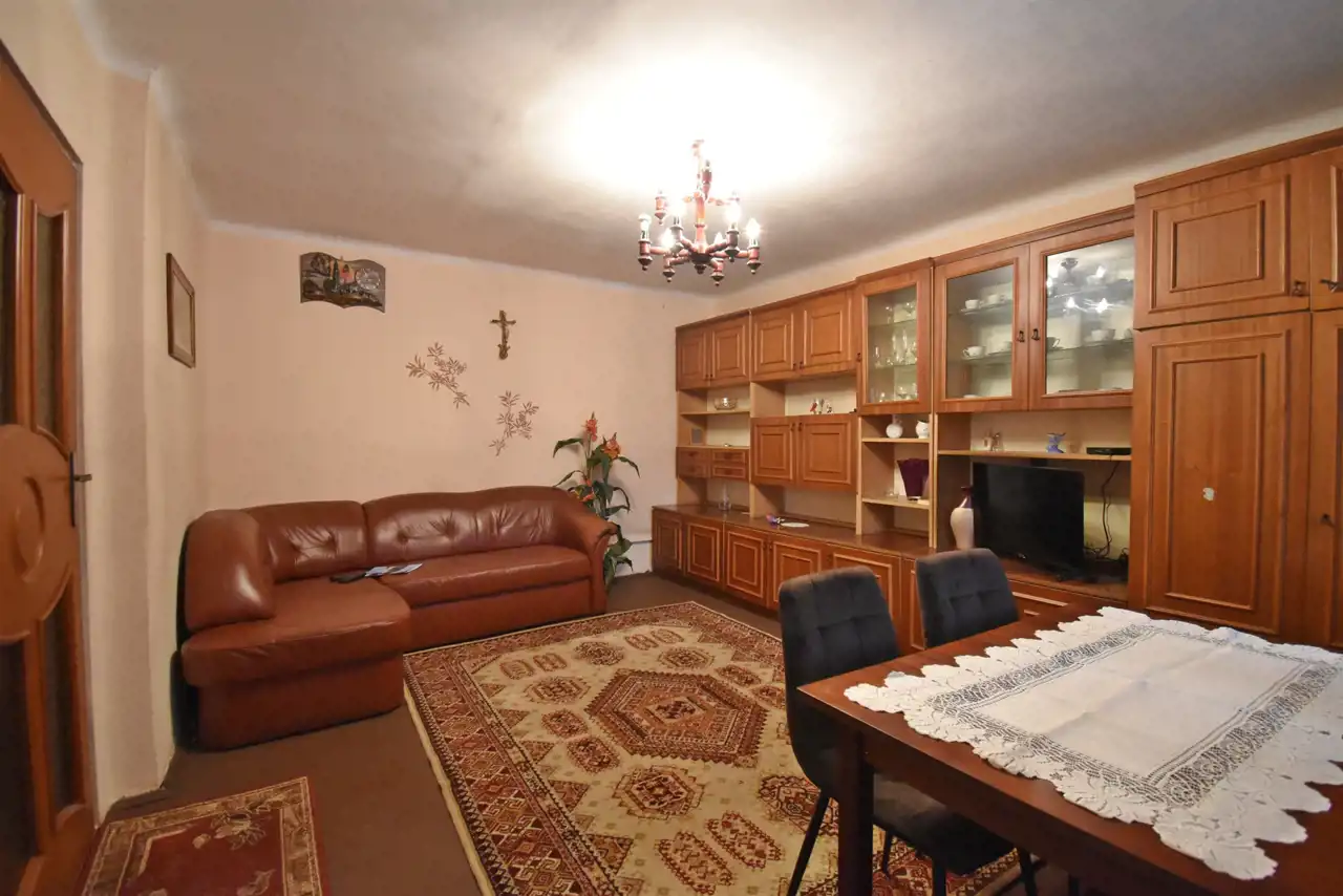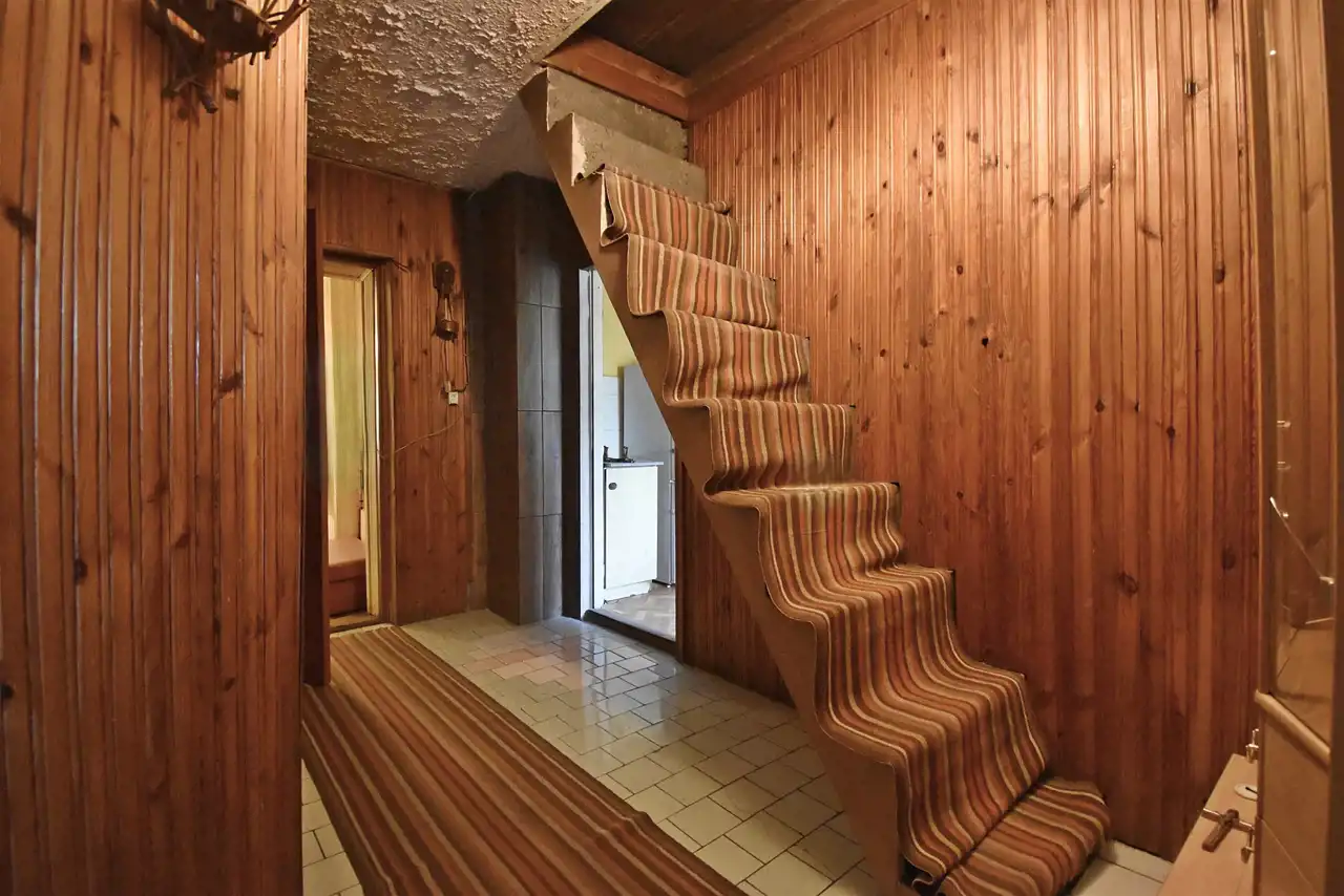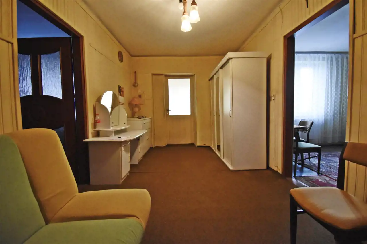 Heating and hot water are provided by a solid fuel boiler. Wooden parquet flooring in rooms and corridors, ceramic tiles in the kitchen and bathrooms.