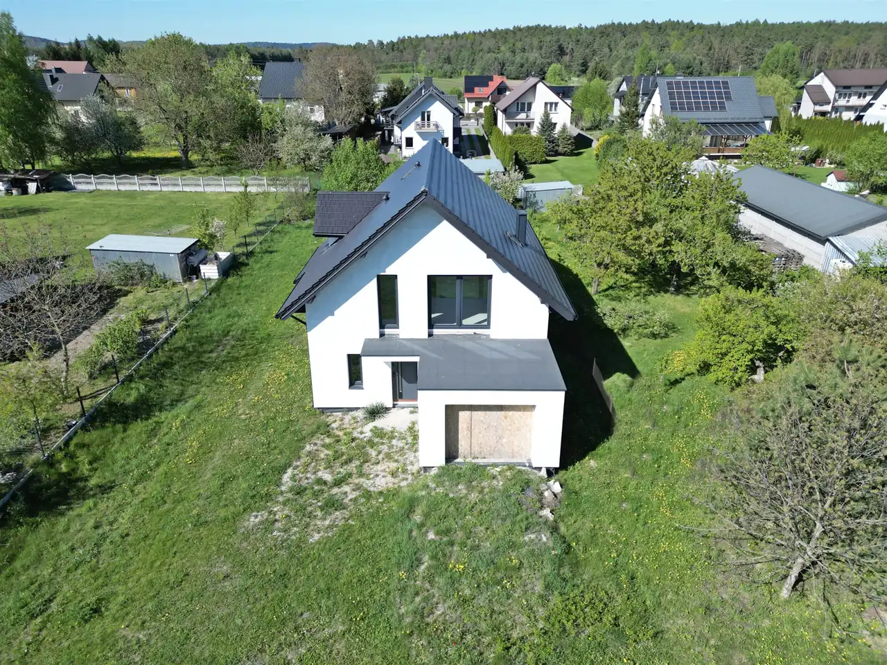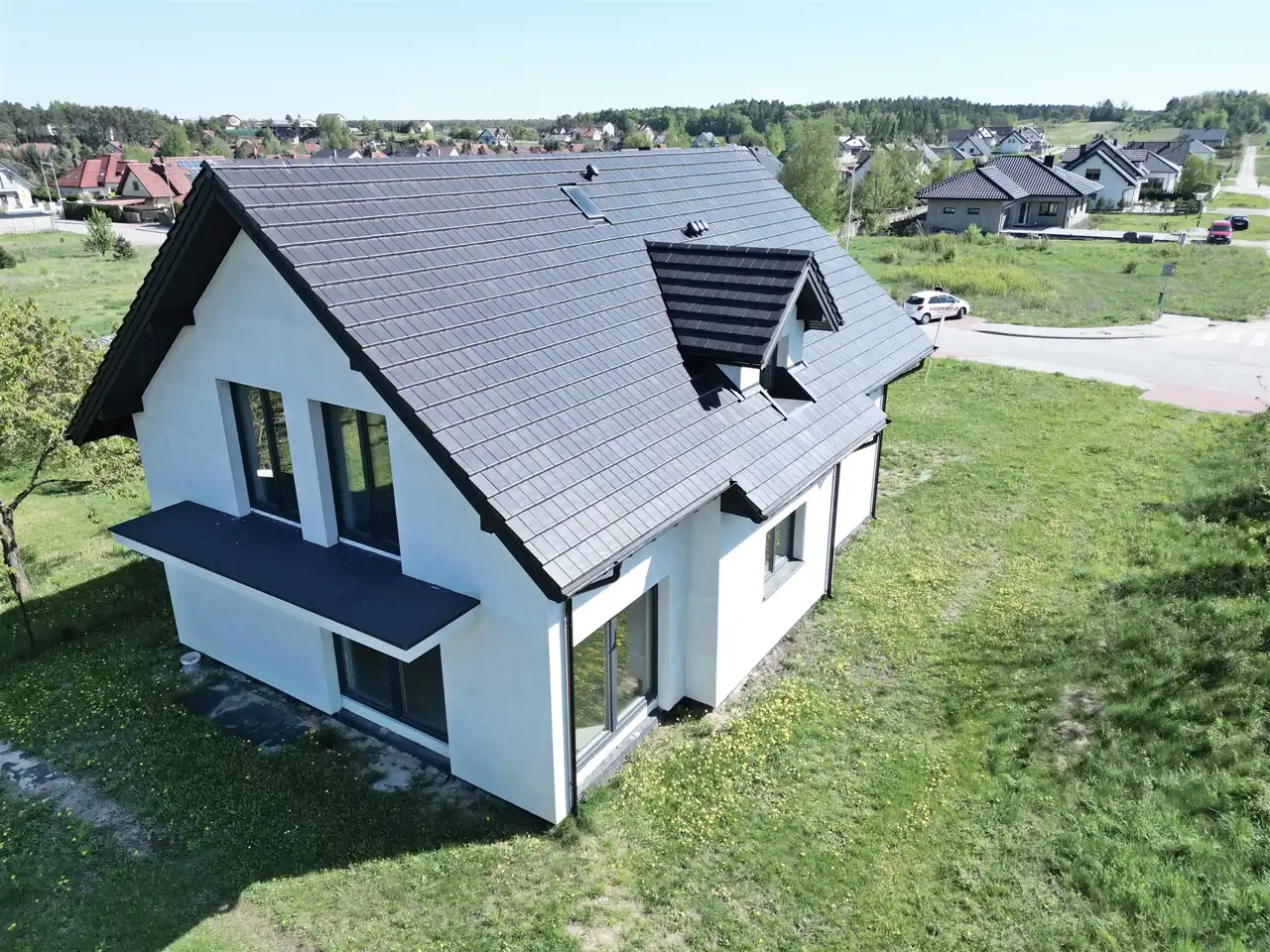 Dom wybudowany z pustaka ceramicznego, kryty blachodachówką, ocieplony styropianem i otynkowany. Planowane ogrzewanie: piec na paliwa stałe albo pompa ciepła. Nieruchomość w stanie surowym zamkniętym.