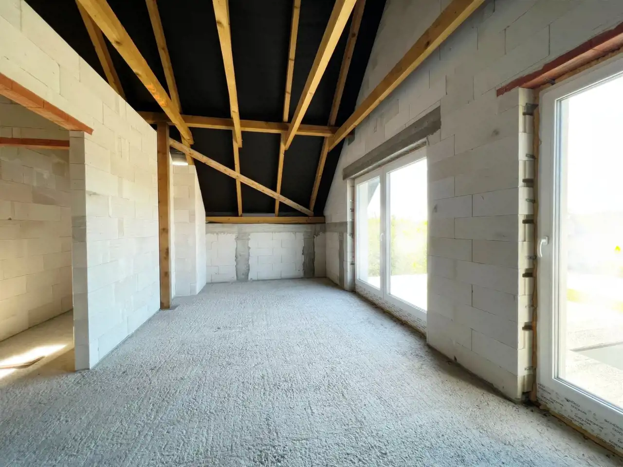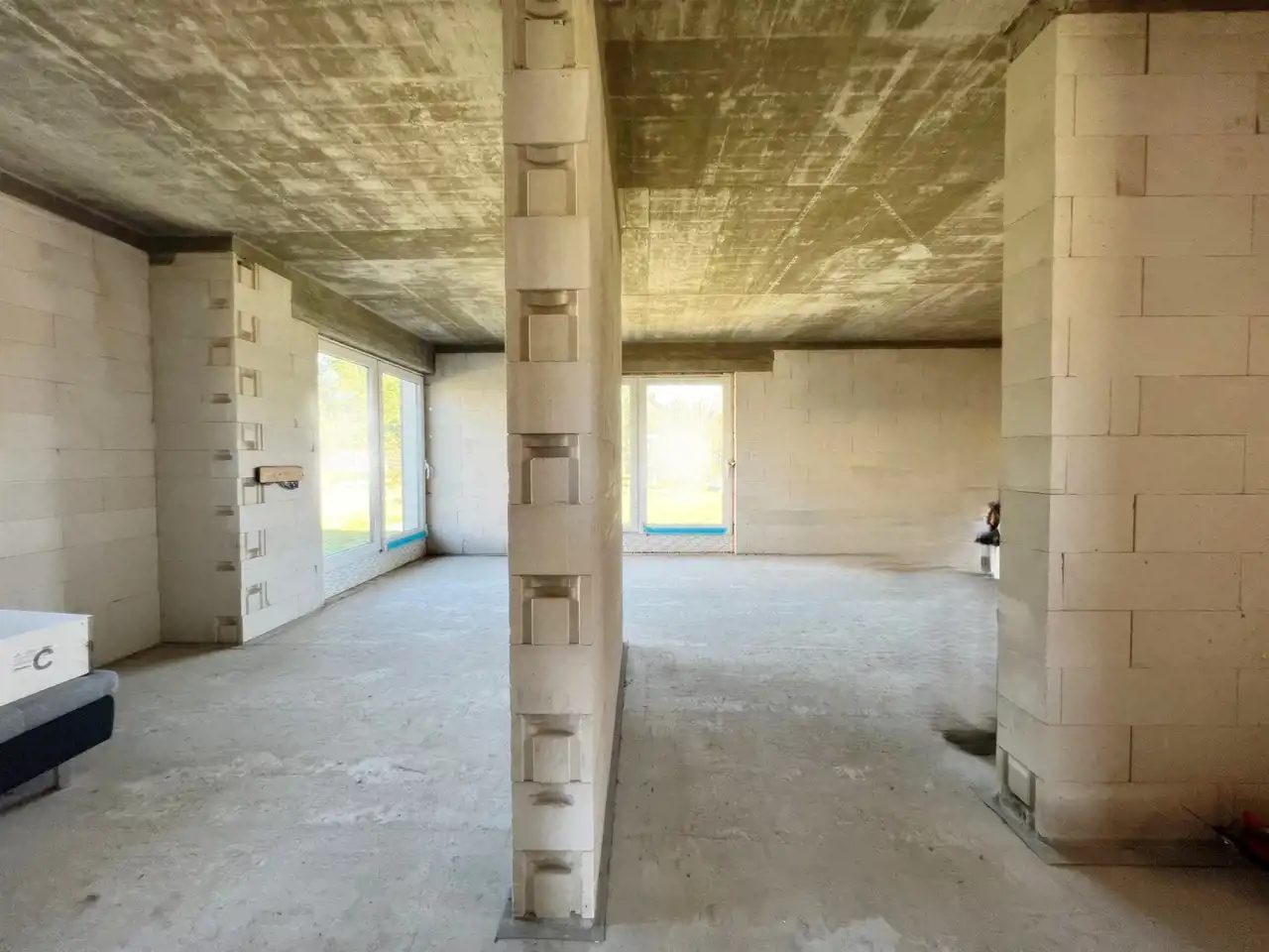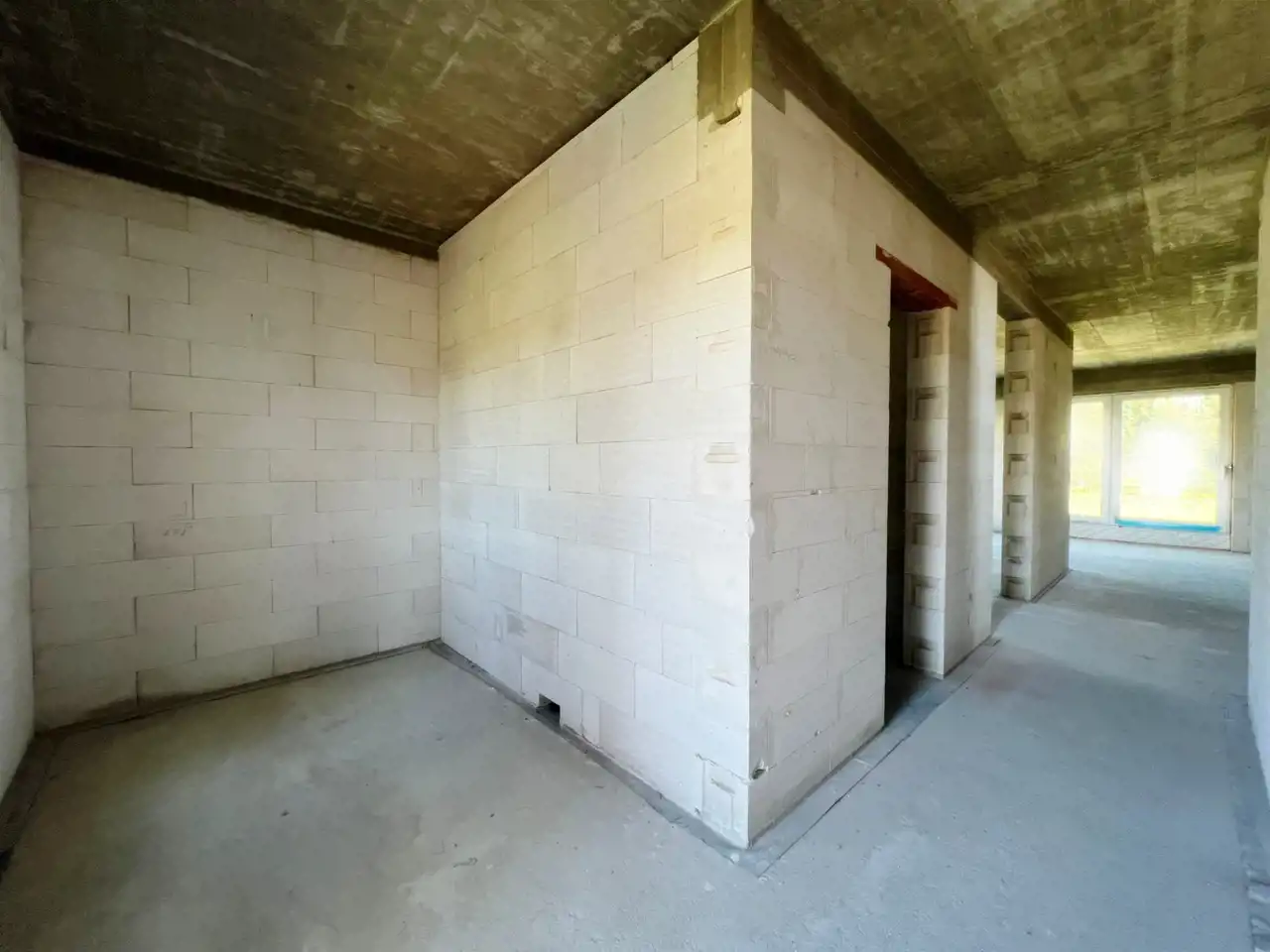 The house is built of ceramic blocks, covered with metal roofing tiles, insulated with styrofoam, and plastered. Planned heating: solid fuel boiler or heat pump. The property is in a closed shell state.