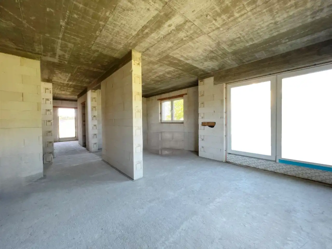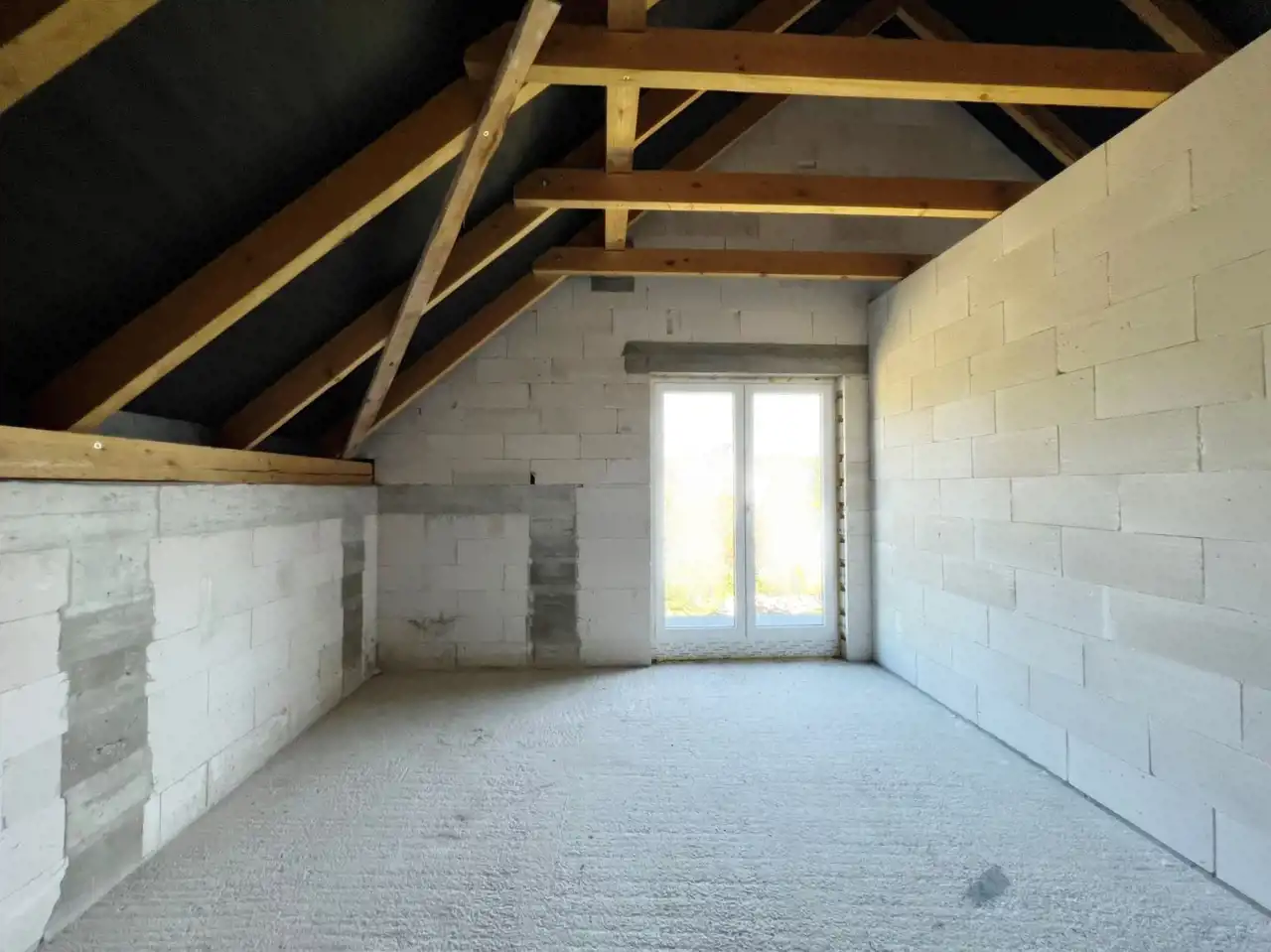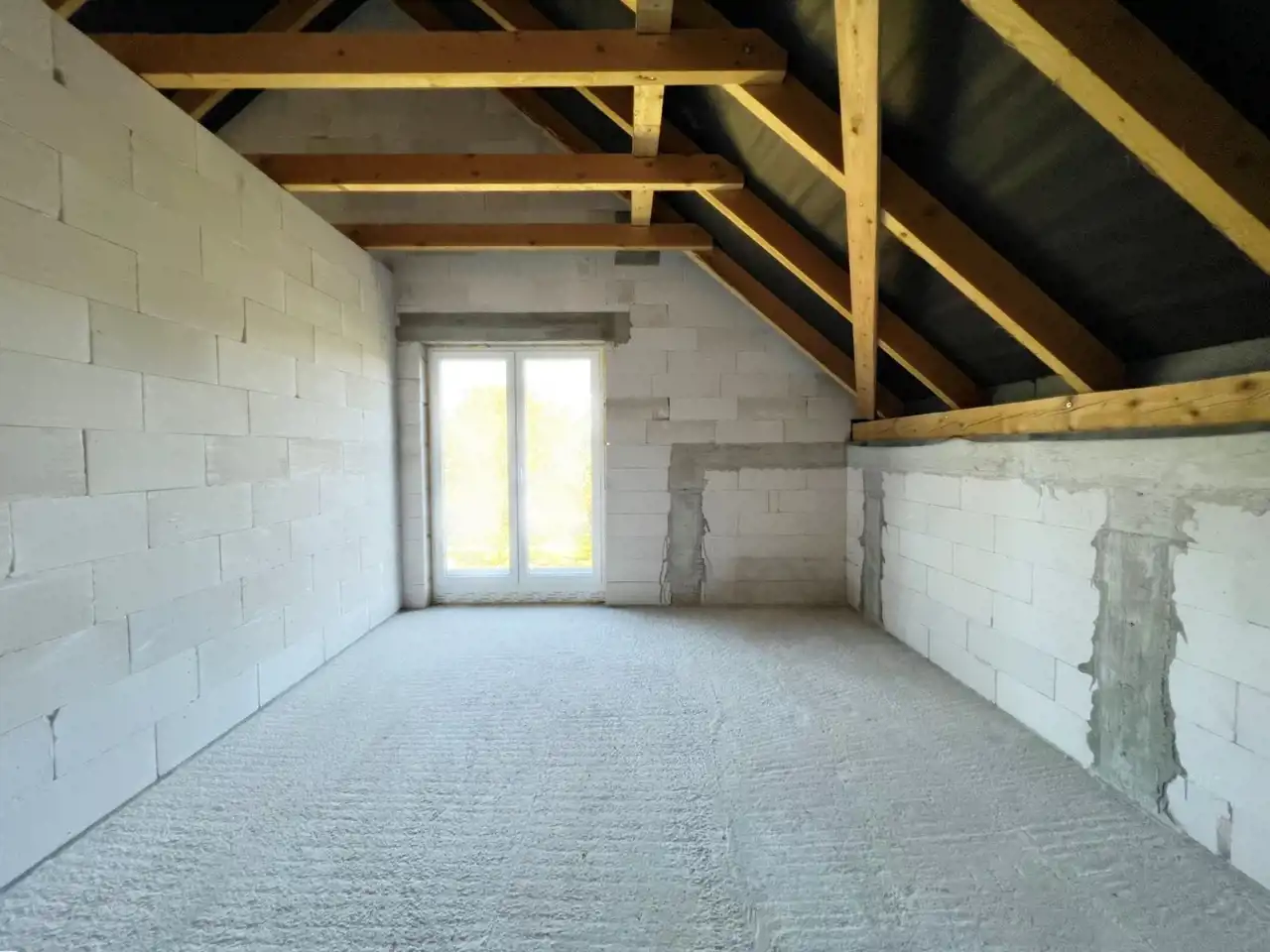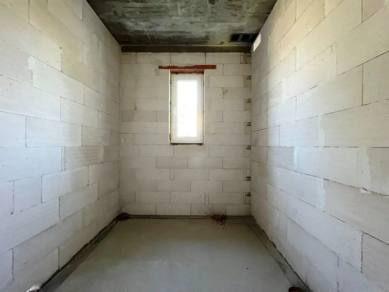 The house is built of ceramic blocks, covered with metal roofing tiles, insulated with styrofoam, and plastered. Planned heating: solid fuel boiler or heat pump. The property is in a closed shell state.