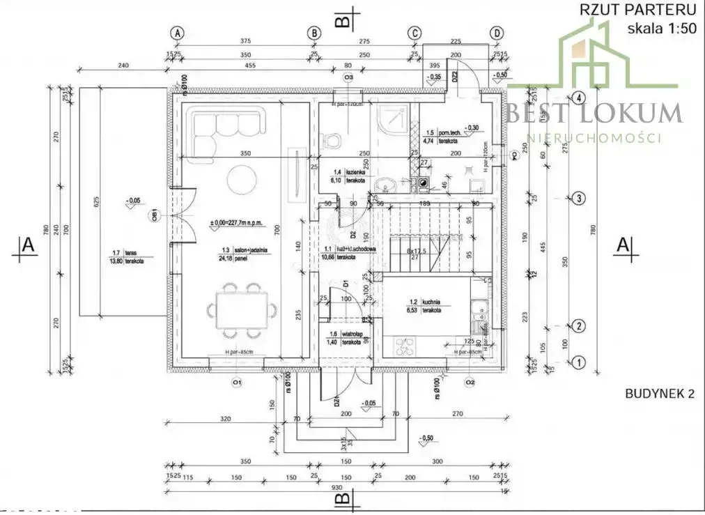 - salon -kuchnia- łazienka - wiatrołap - kotłownia / pom. techniczne