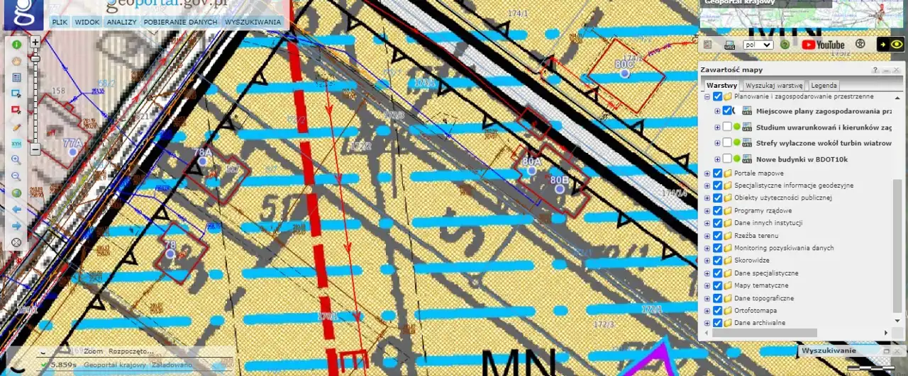 Nad przednią częścią działki przebiega linia średniego napięcia. Możliwa jest zabudowa w tylnej części działki.