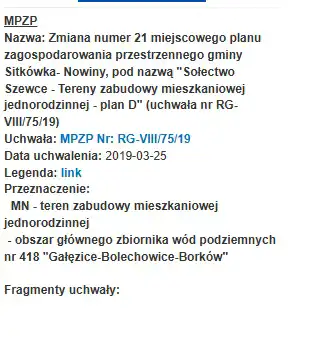 Teren, na którym znajduje się działka jest objęty Miejscowym Planem Zagospodarowania Przestrzennego -- MN - tereny zabudowy mieszkaniowej jednorodzinnej.