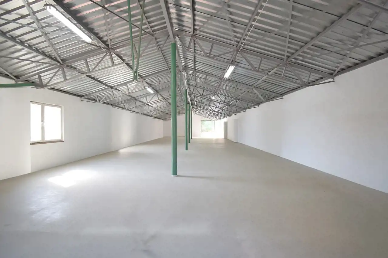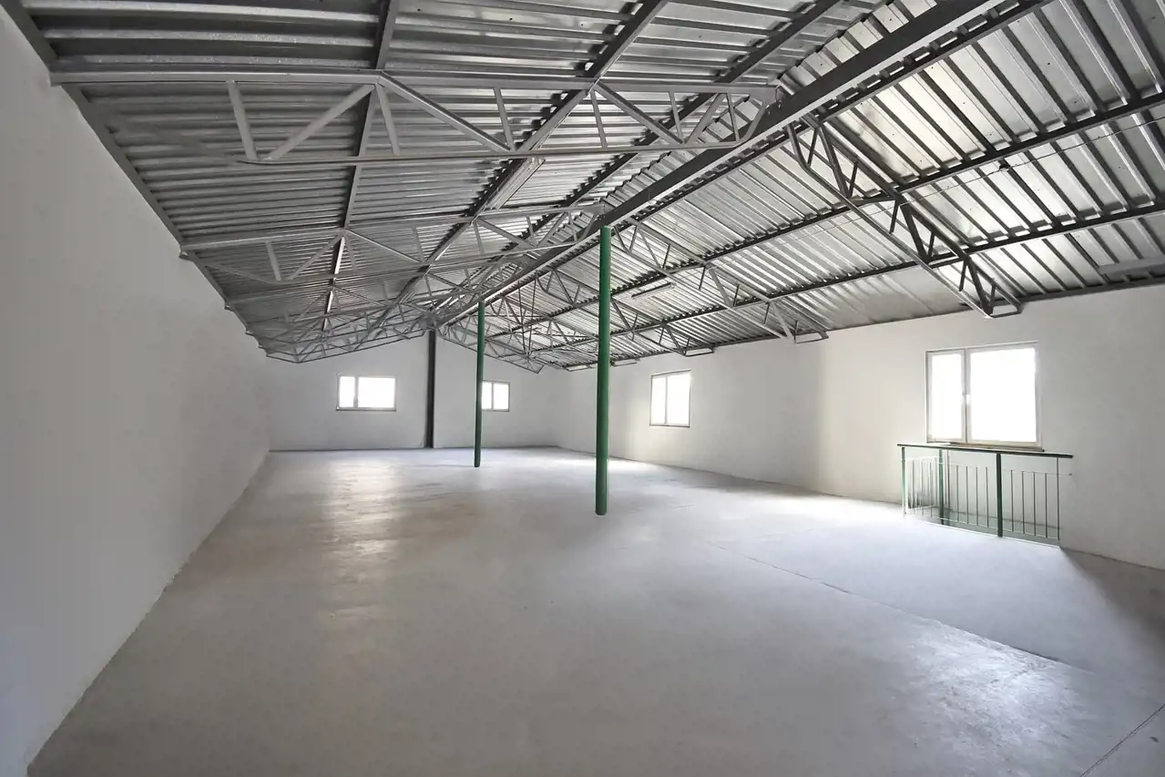 The building is constructed of siporex blocks and insulated with 10 cm polystyrene. In front of the building, there is a public parking area for tenants and customers. The entrance gate to the hall is 2.70 m high. The hall measures 10 m x 30 m. The hall is unheated; the office and social areas are heated electrically.