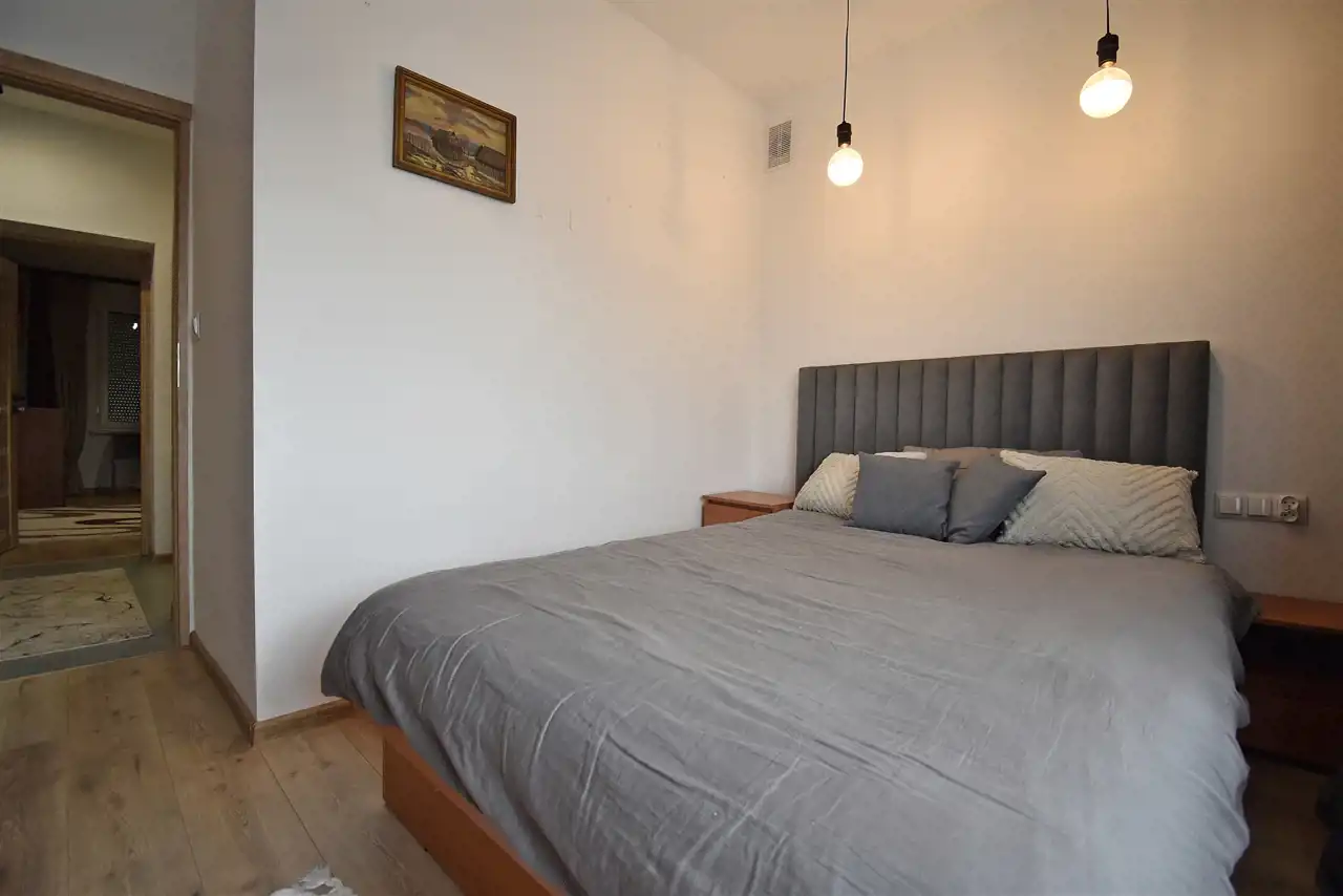 Heating is provided by a local network, and hot water by an electric water heater. The apartment includes a basement storage unit (6.9 m²). The property was renovated in 2023. Flooring: laminate panels and gres tiles. PVC windows with external anti-burglary shutters. The apartment is warm.