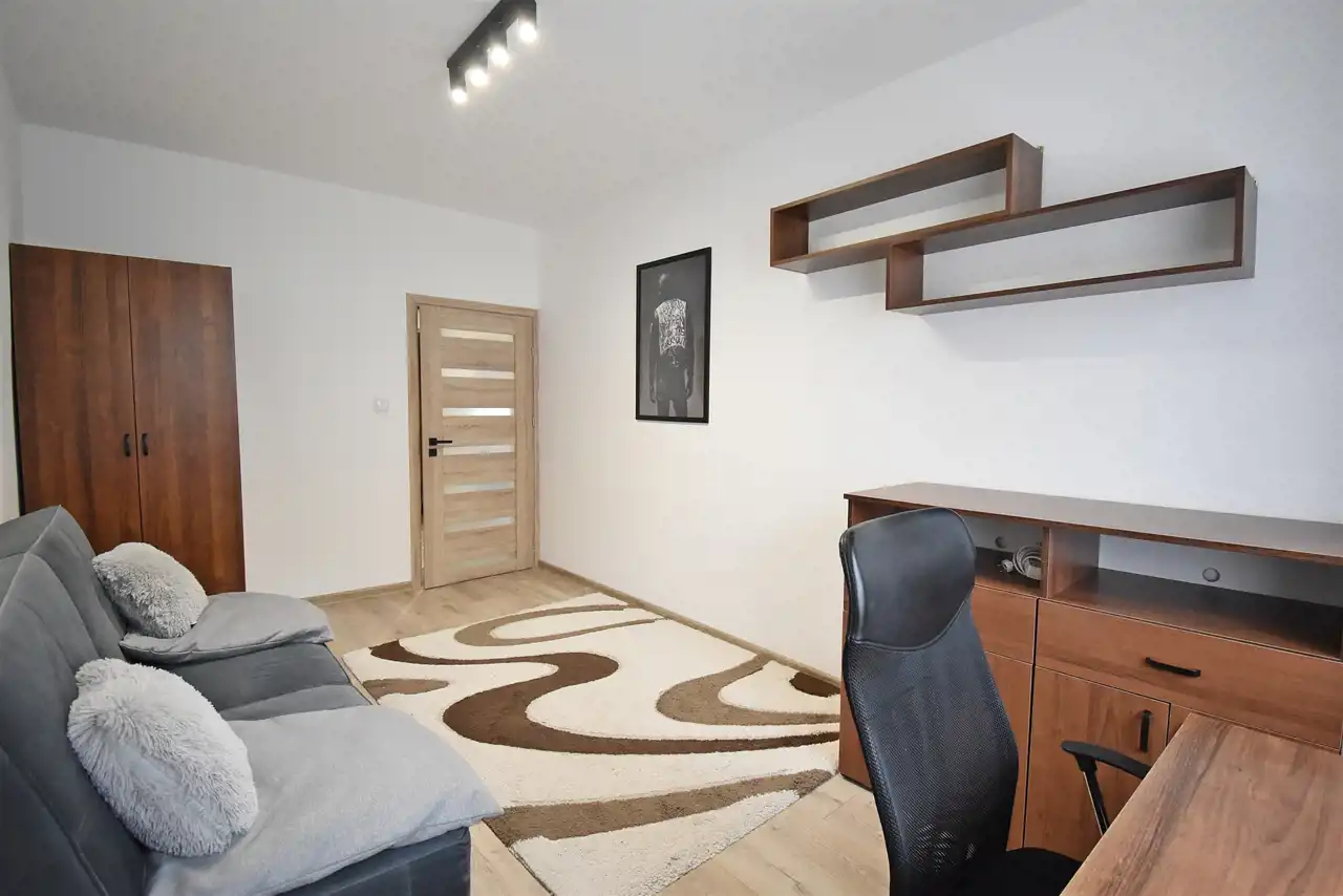 Maintenance costs: administrative fee 762.99 PLN (includes advances for heating, water, and waste collection) + approx. 335 PLN (renovation fund). Additionally, electricity according to meter readings.