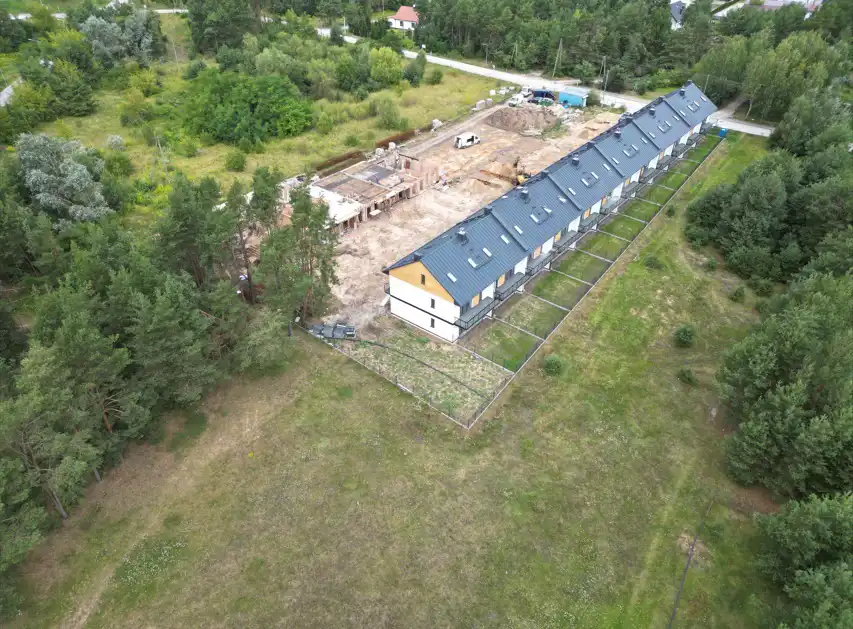 A modern apartment with an area of 59.35 m² located on the ground floor of a new, intimate, two-apartment building situated in Trzcianki near Nowiny. The building has a modern design and is constructed from high-quality materials. The estate is located in a green, wooded area.