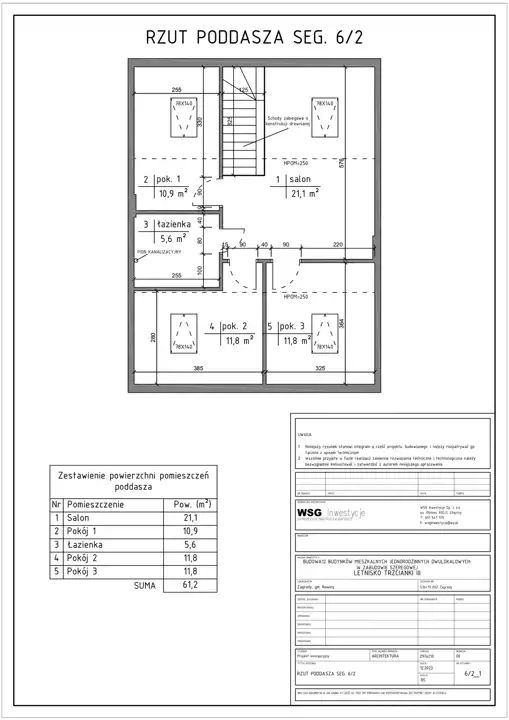 - poddasze do indywidualnej adaptacji (na rzucie pomysł na kolejne mieszkanie z salonem 3 sypialniami oraz łazienką)