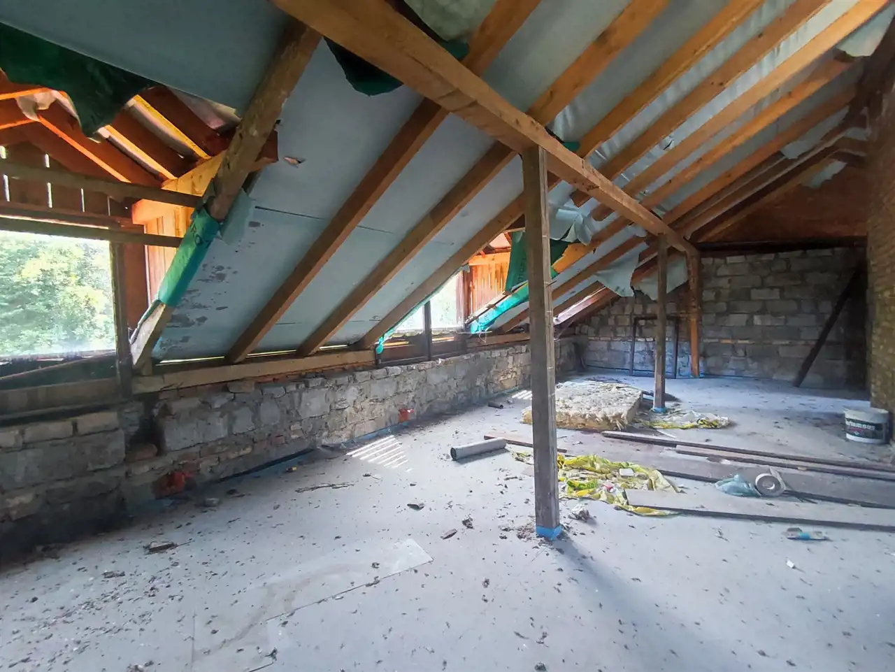 Poddasze: wysokie, do adaptacji (w planie 3 pokoje, kuchnia, łazienka, toaleta i korytarz).