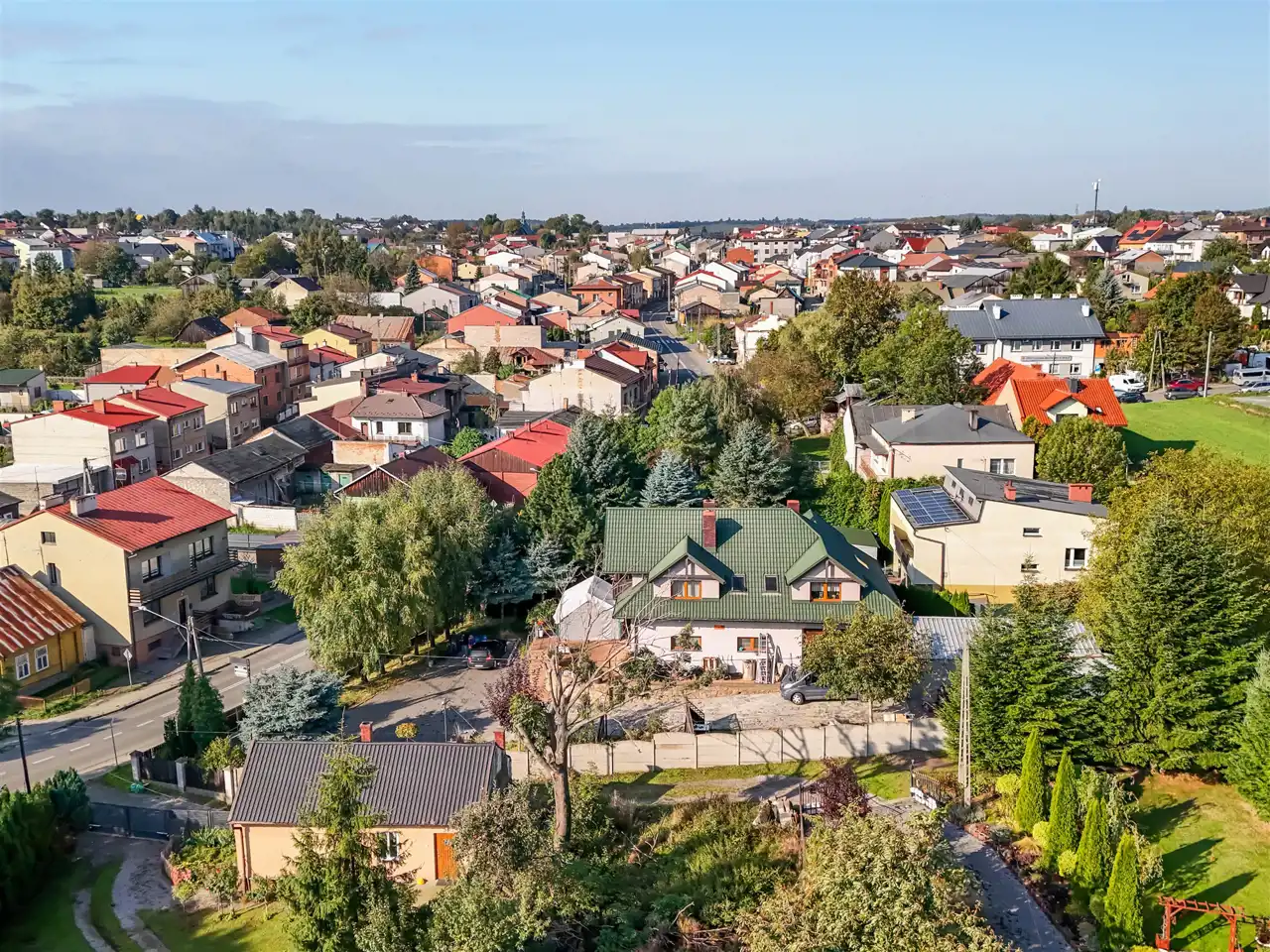 Nieruchomość znajduje się na działce o powierzchni 12 arów i obejmuje budynek murowany z pustaka max, ocieplony styropianem. Dach pokryty jest blachodachówką (z możliwością wymiany na dachówkę), okna PCV. Ogrzewanie zapewnia piec na paliwo stałe z kotłowni na poziomie -1, natomiast gaz znajduje się już na działce – istnieje możliwość podłączenia.