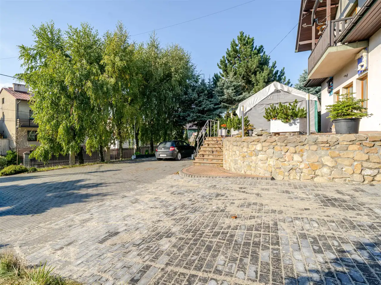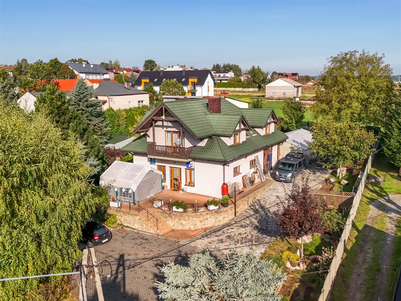 Lokalizacja łączy w sobie spokój i bliskość natury z wygodnym dostępem do infrastruktury miejskiej – w zasięgu są sklepy, szkoły i przystanki, a sam Kraków oddalony jest o zaledwie kilkanaście minut jazdy samochodem.